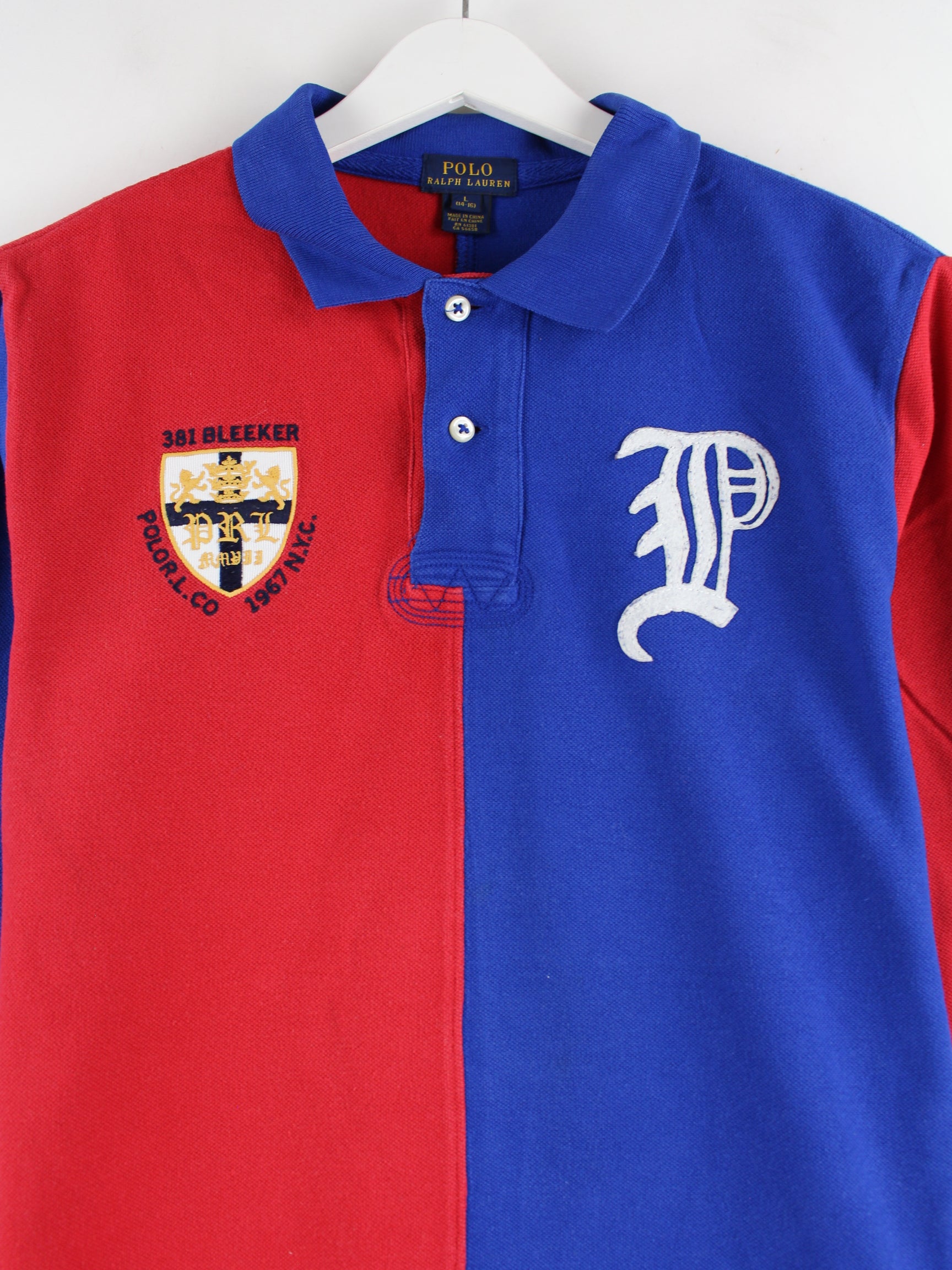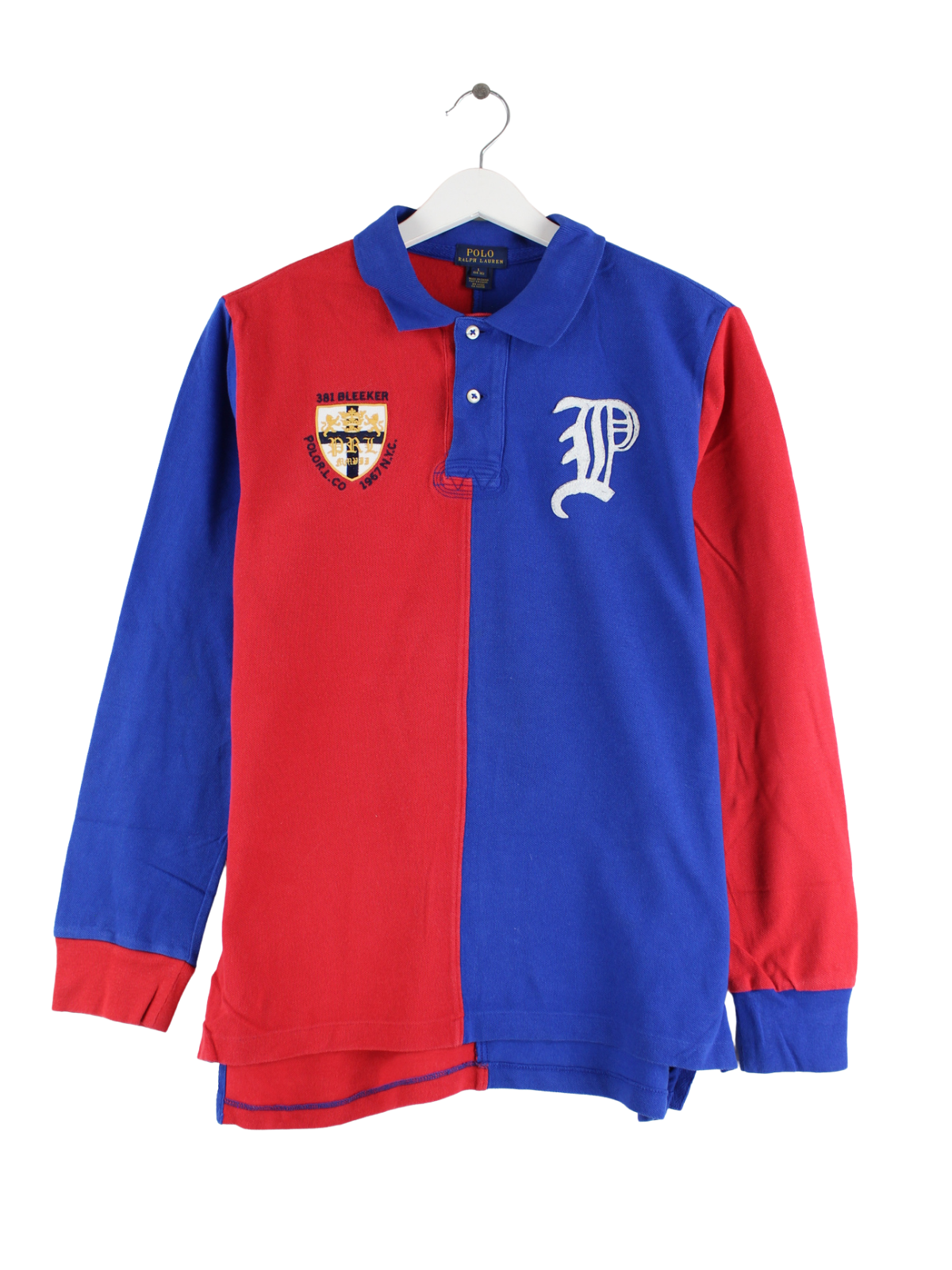 Ralph Lauren Embroidered Langarm Rugby Polo Blau / Rot XS