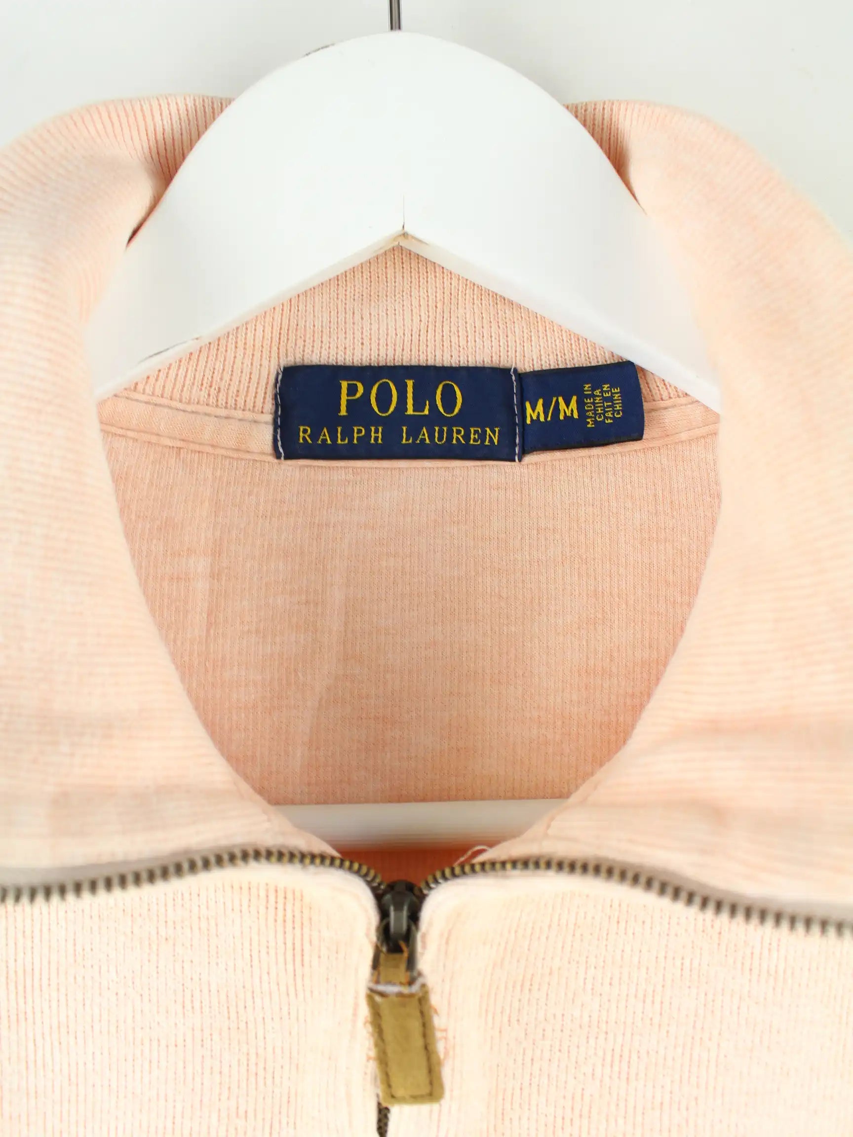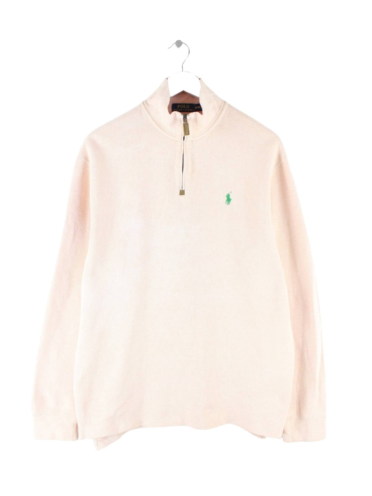 Sweater vom Label Ralph Lauren mit halbem Reißverschluß in Größe M. Er ist aus Baumwolle gemacht und in Rosa vorrätig.