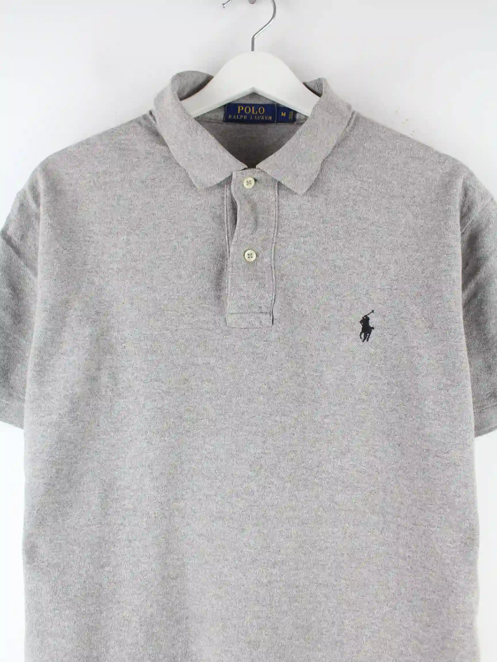 Graues Poloshirt vom Brand Ralph Lauren in Größe M. Es ist aus Baumwolle und in sehr gutem Zustand bei uns vorrätig.
