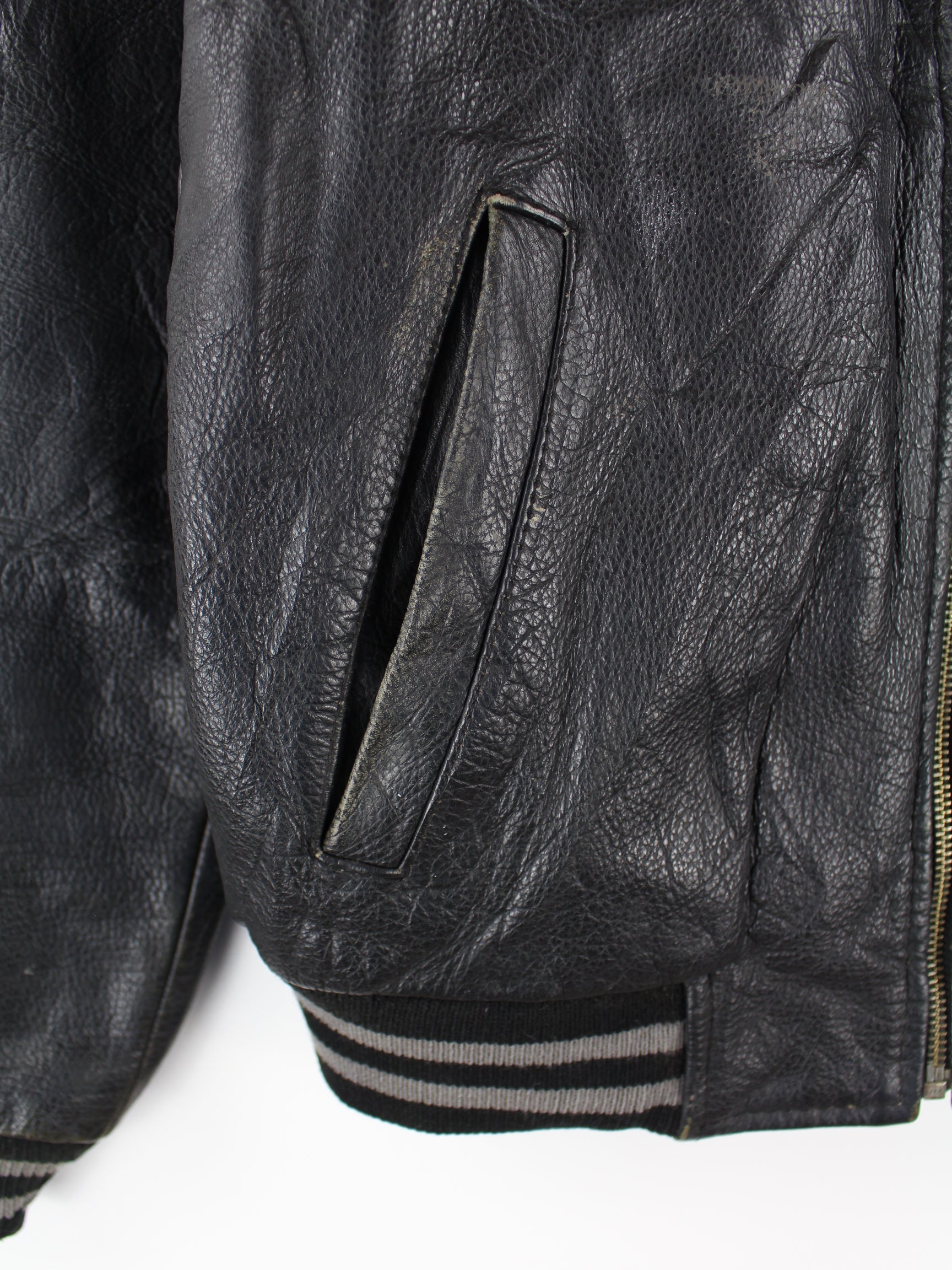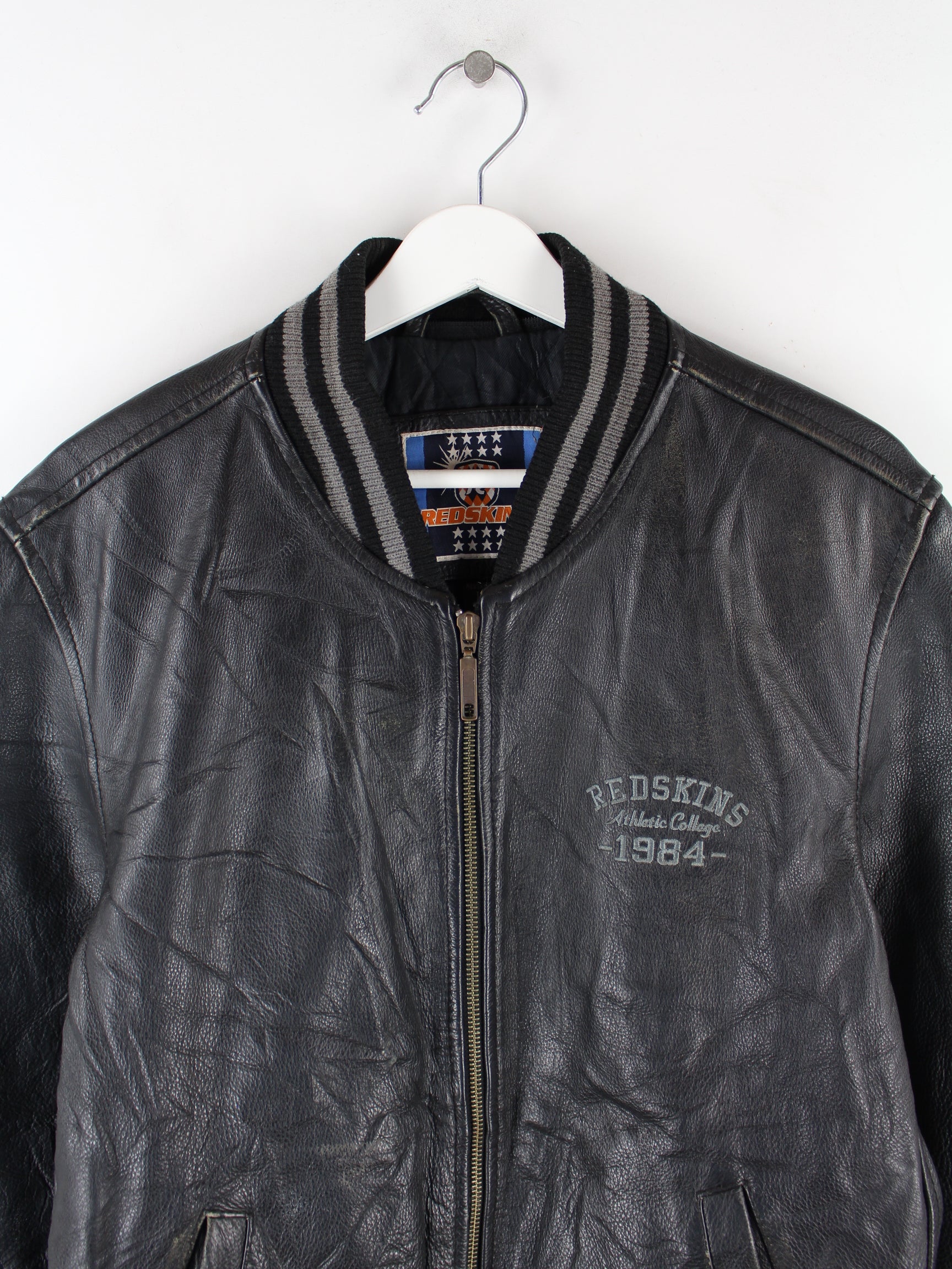 Redskins 90s Vintage College Leder Jacke Schwarz L