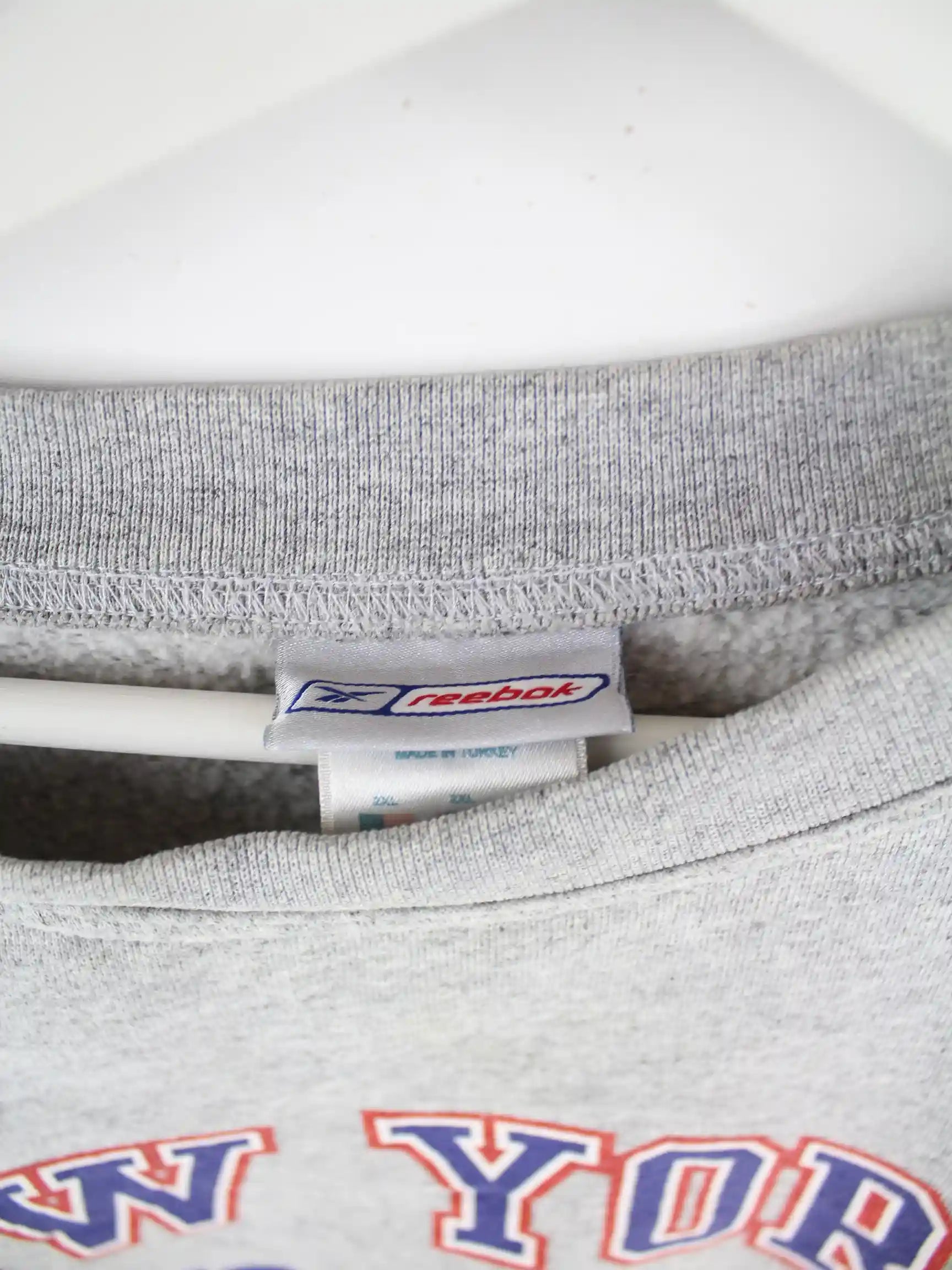 Grauer Sweater des Labels Reebok in Größe XXL. Er ist aus einer Baumwollmischung . Den Zustand würden wir als 'In Ordnung' bezeichnen (vergl. Bilder).Mit schönem Giants Print.