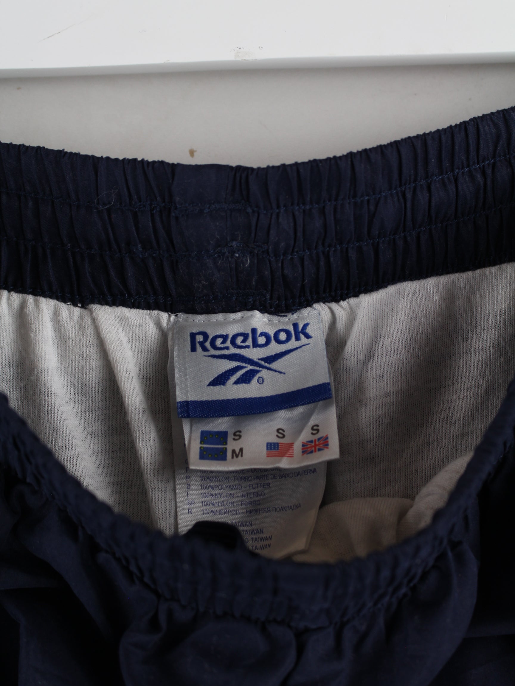 Track Pants aus dem Hause Reebok in Größe M. Sie sind aus Synthetik produziert und in Blau im Angebot.