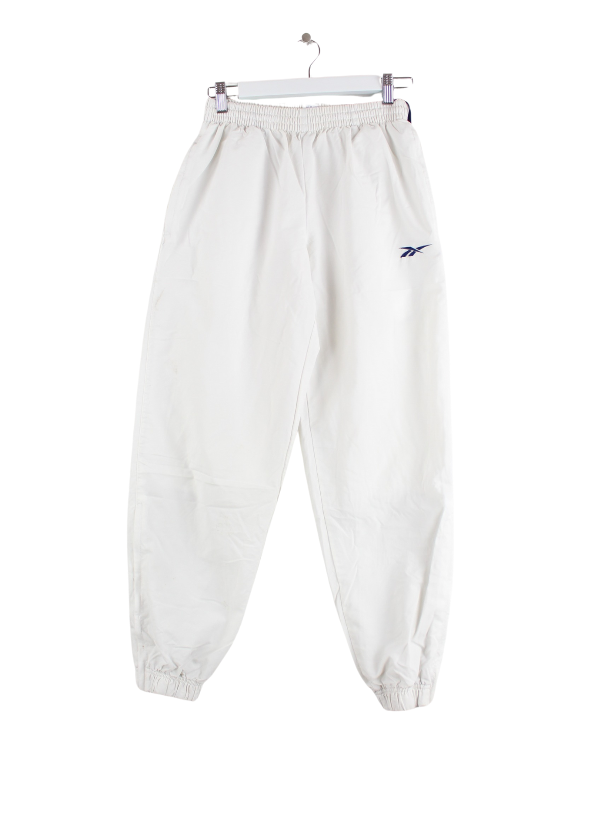 Track Pants der Marke Reebok mit Stick in Größe XS. Sie sind aus Synthetik gefertigt und in Weiß auf Lager.
