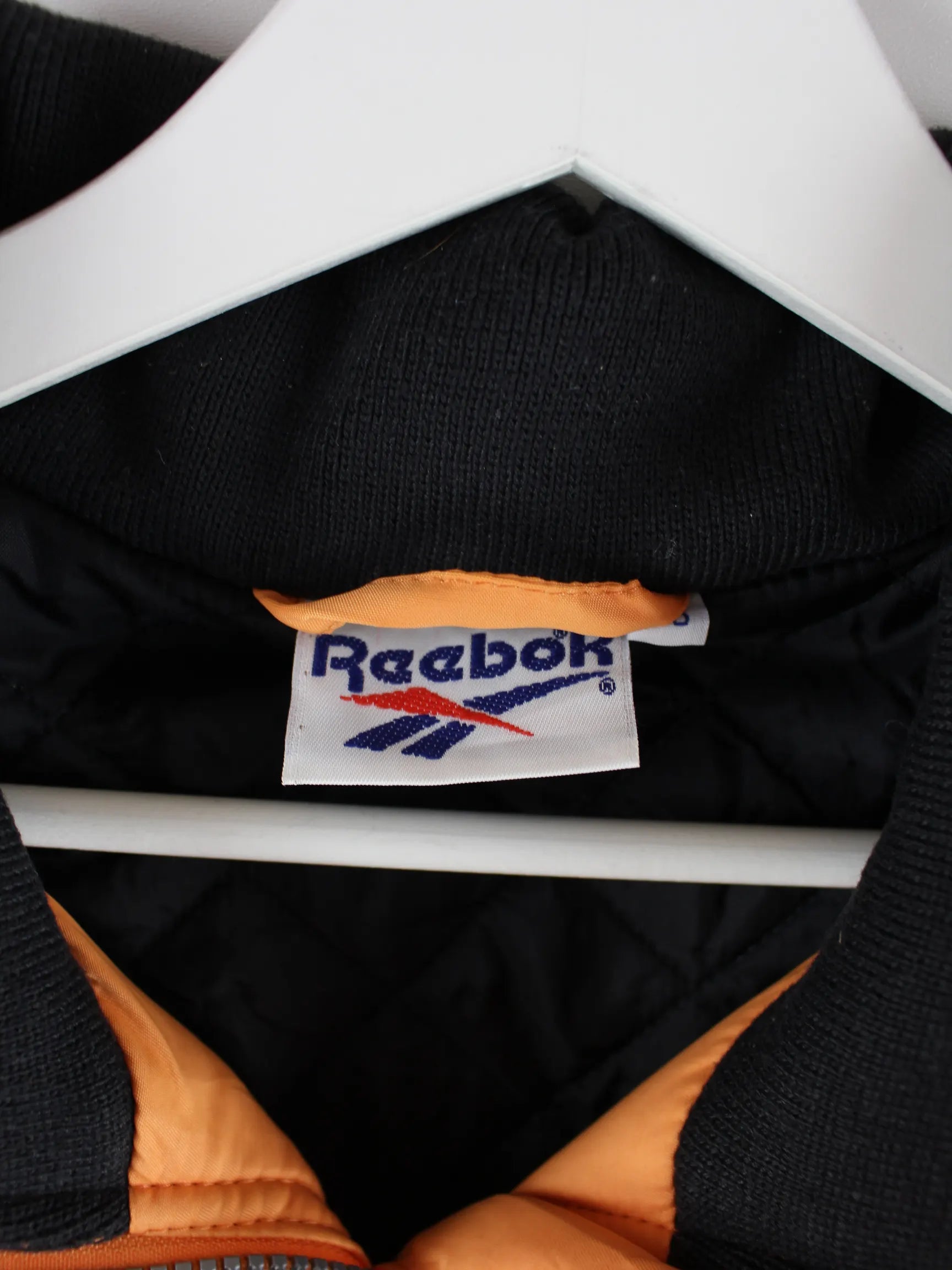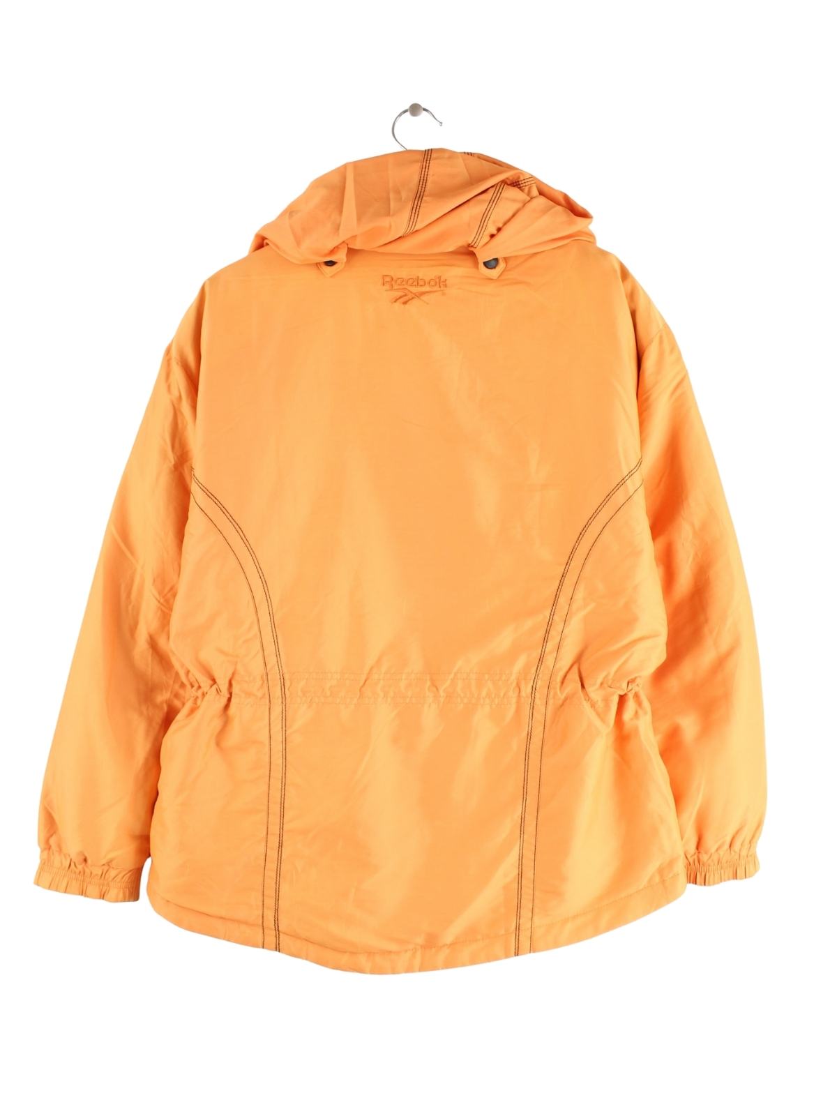 Orangefarbene Jacke von Reebok aus den 90'ern in Größe M. Sie ist aus Synthetik hergestellt und in gutem Zustand bei uns zu bekommen.
