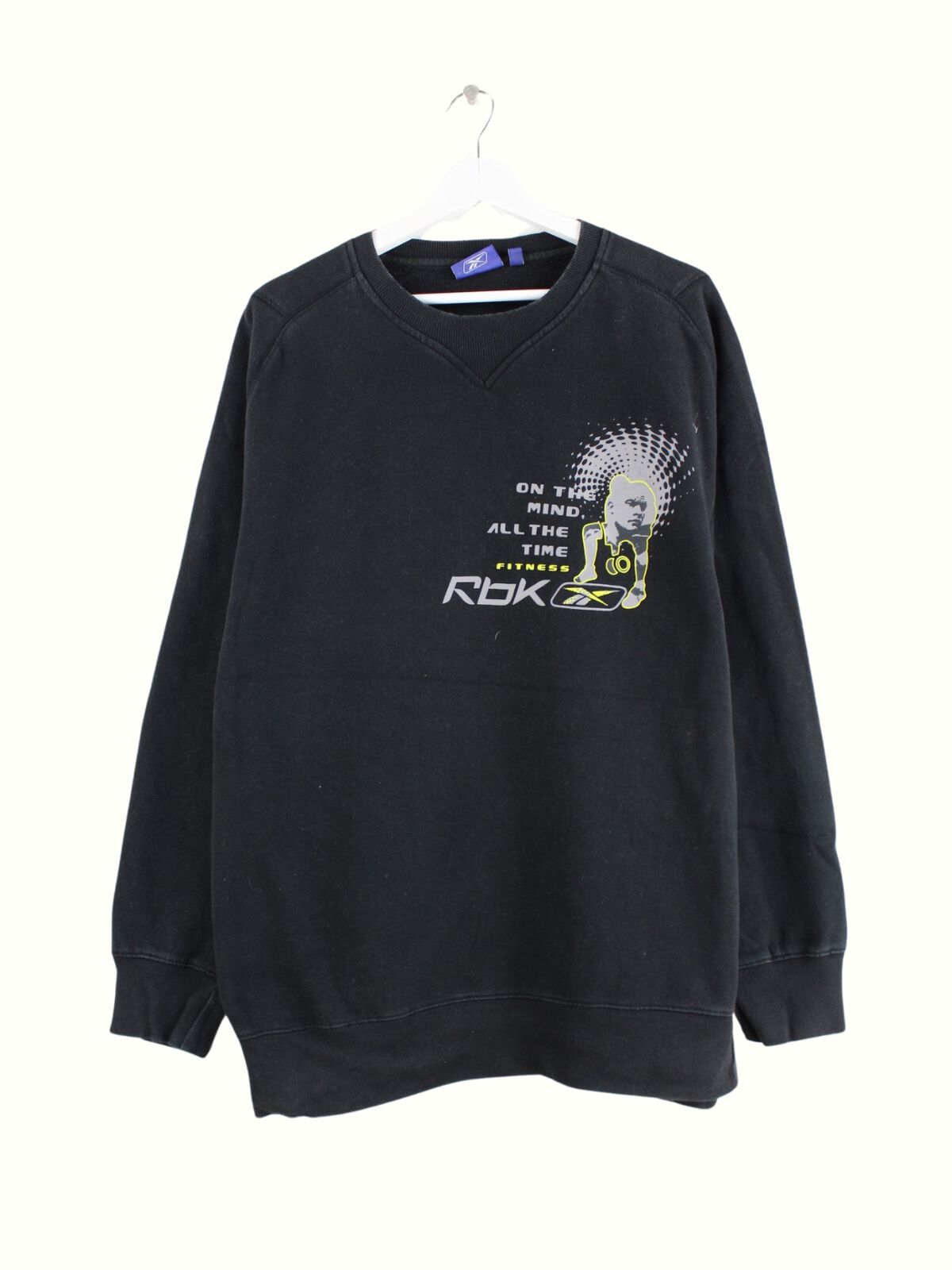 Sweater von Reebok in Größe XXL. Er ist aus einer Baumwollmischung gefertigt und in Schwarz zu bekommen. Mit chiquem Fitness Print.