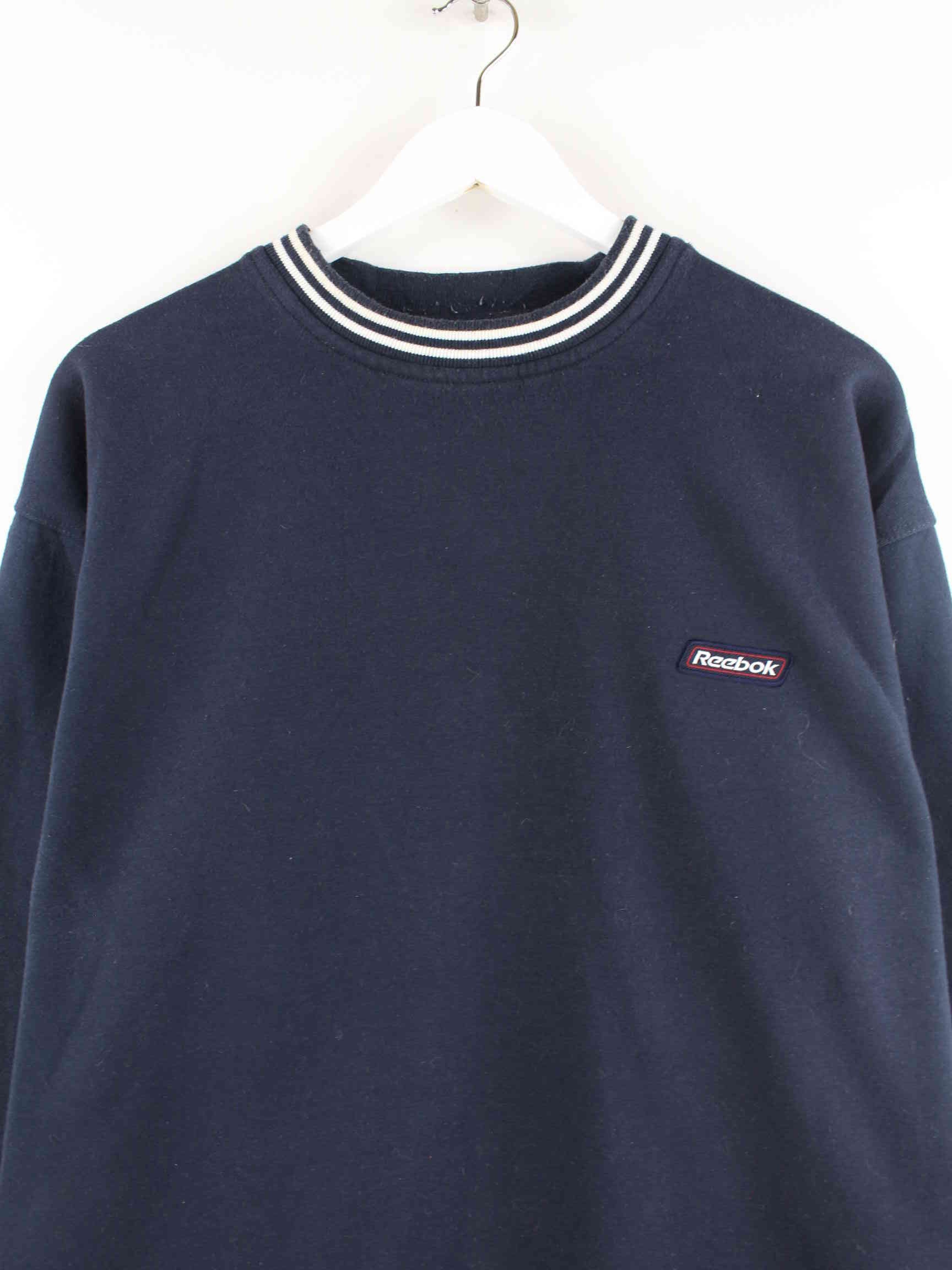 Sweater der Brand Reebok in Größe M aus Anfang der 2000'er. Er ist aus einer Baumwollmischung angefertigt und in Blau in Stock.