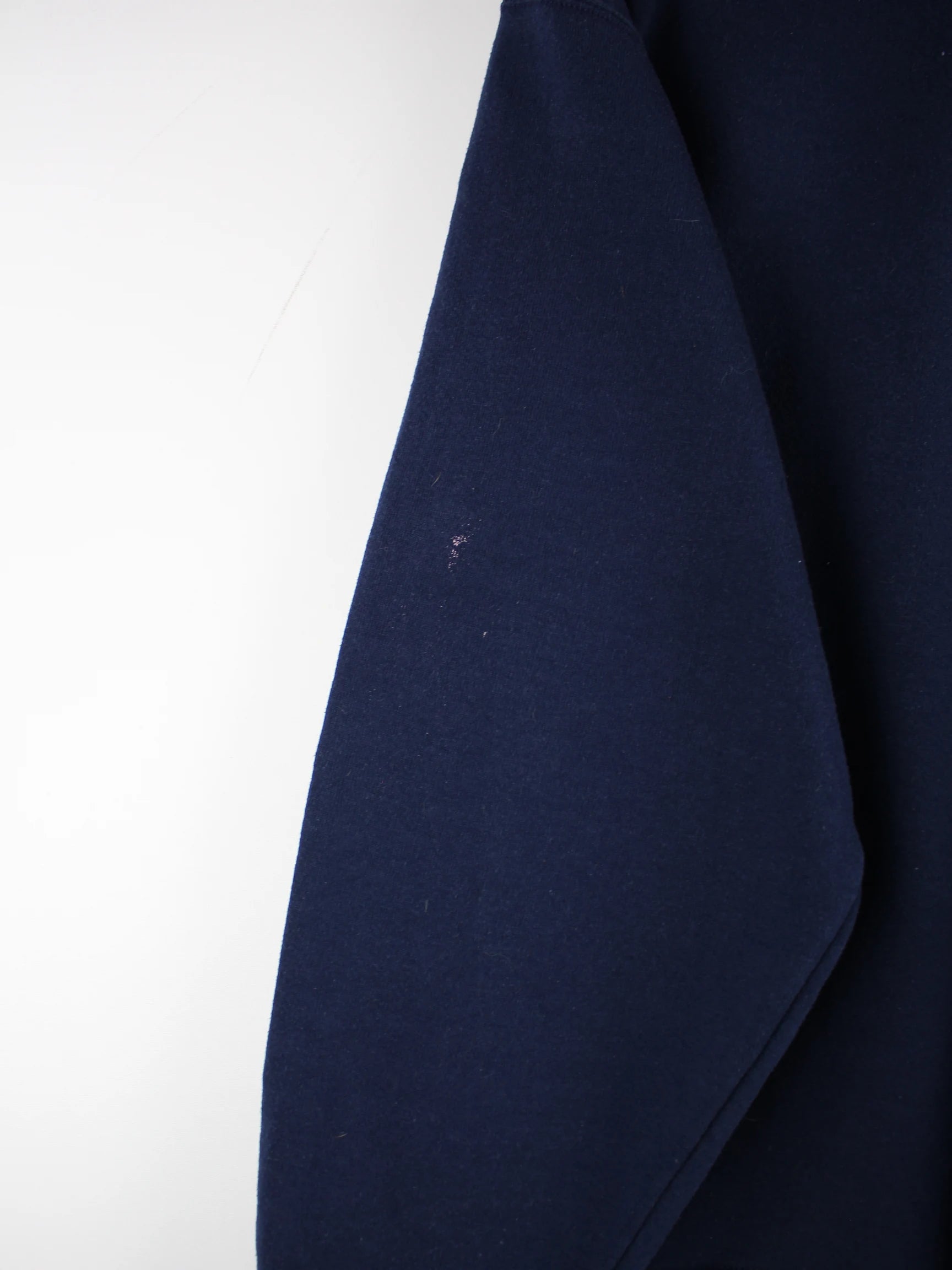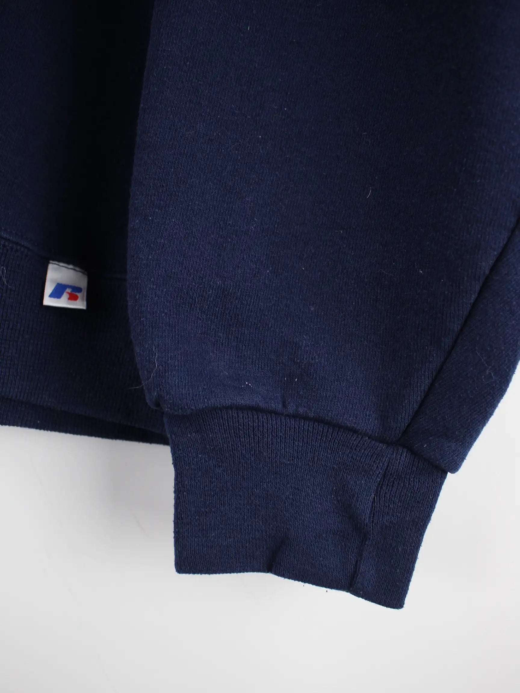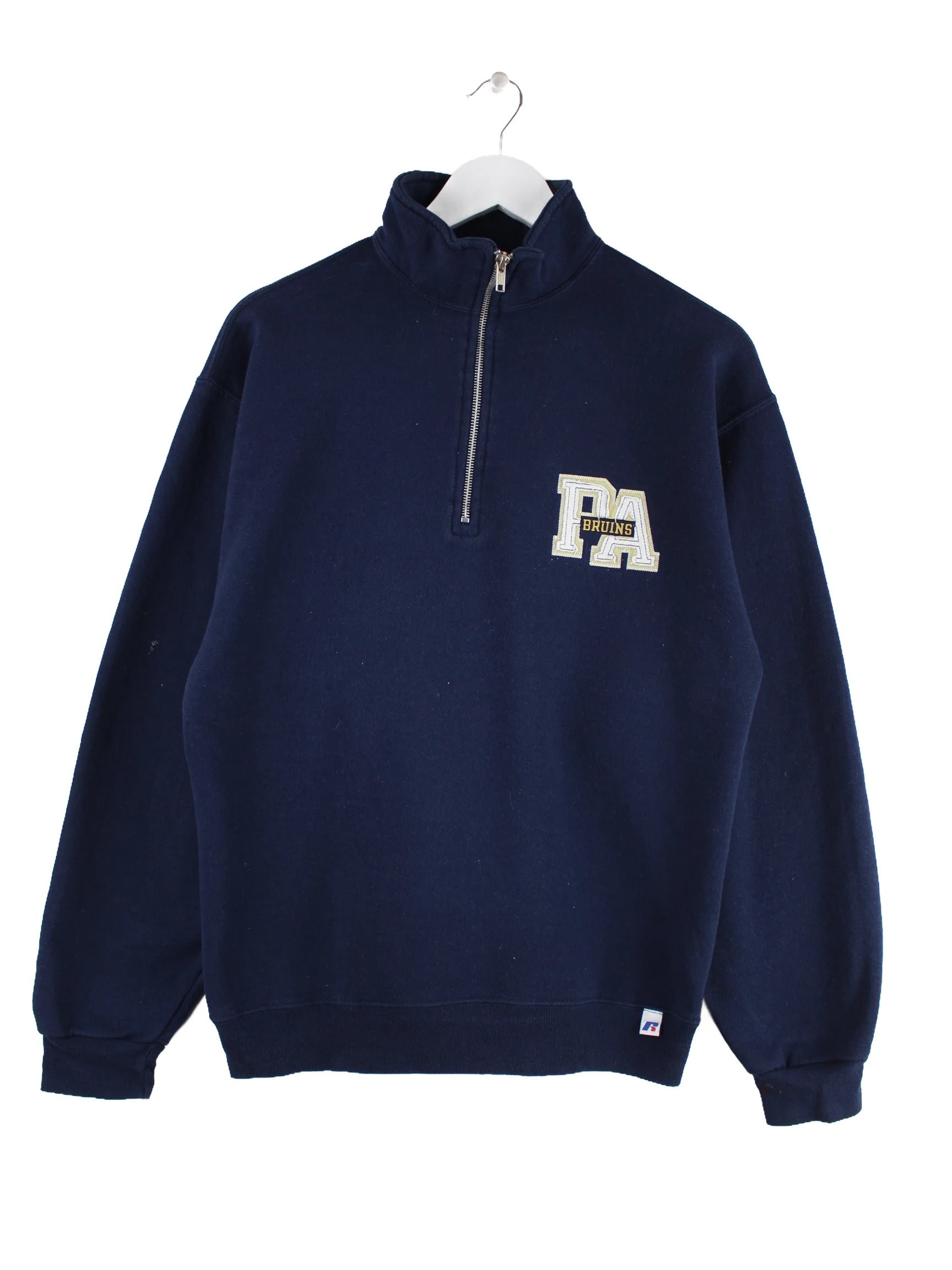 Blauer Sweater mit half Zip der Brand Russell Athletic in Größe M. Er ist aus einer Baumwollmischung gefertigt und in gutem Zustand in Stock.