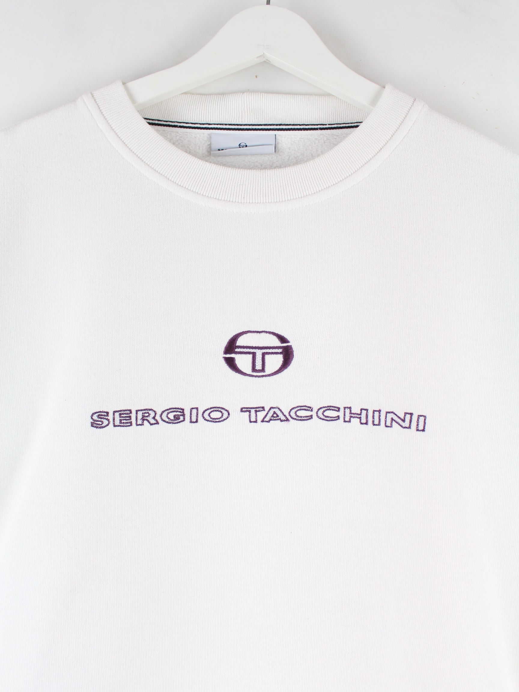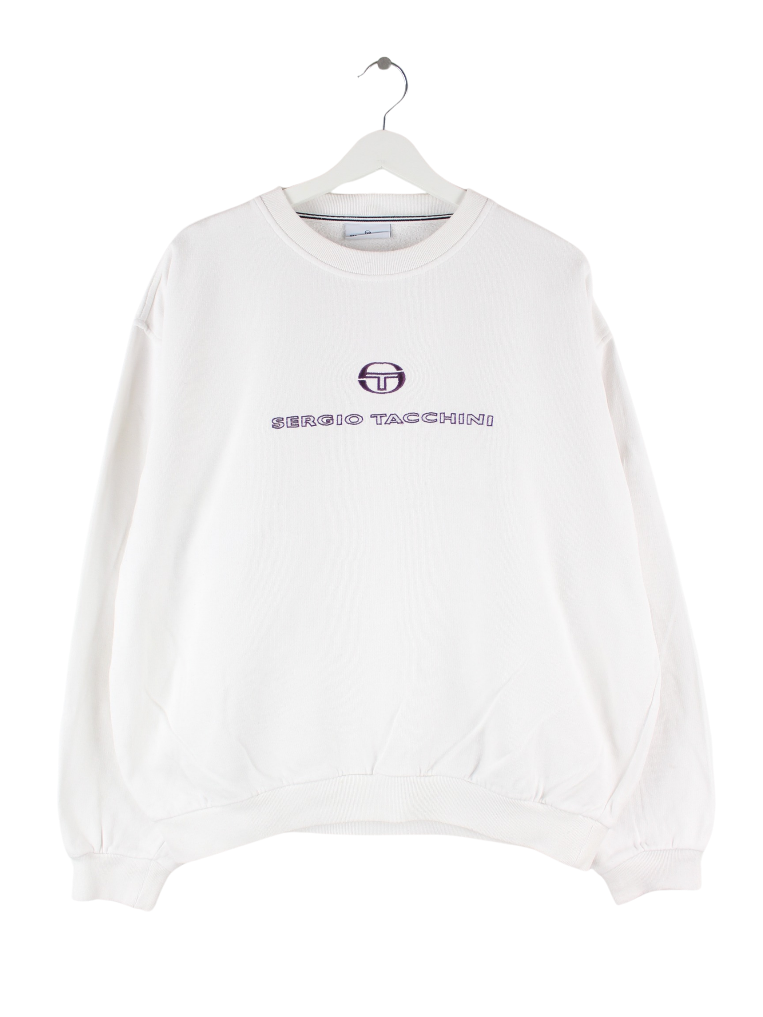 Sweater der Marke Sergio Tacchini in Größe XL. Er ist aus einer Baumwollmischung gefertigt und in Weiß auf Lager.