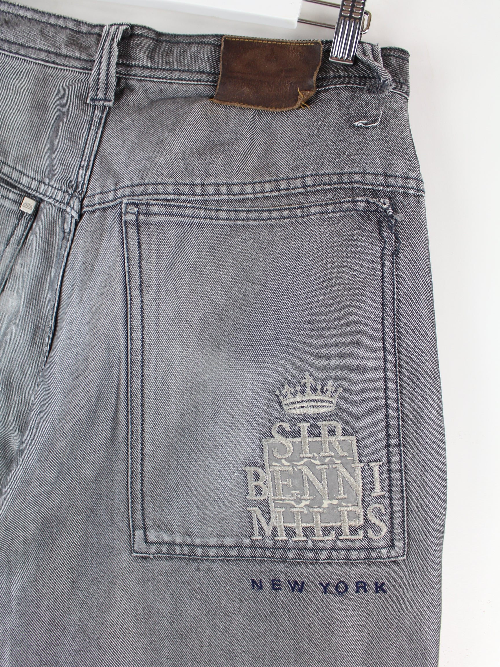 Sir Benni Miles y2k Embroidered Baggy Jeans Grau W31