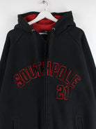 Schwarzer Hoodie mit Reißverschluß des Labels Southpole in Größe 3XL. Er ist aus einer Baumwollmischung gefertigt und in gutem Zustand zu haben.