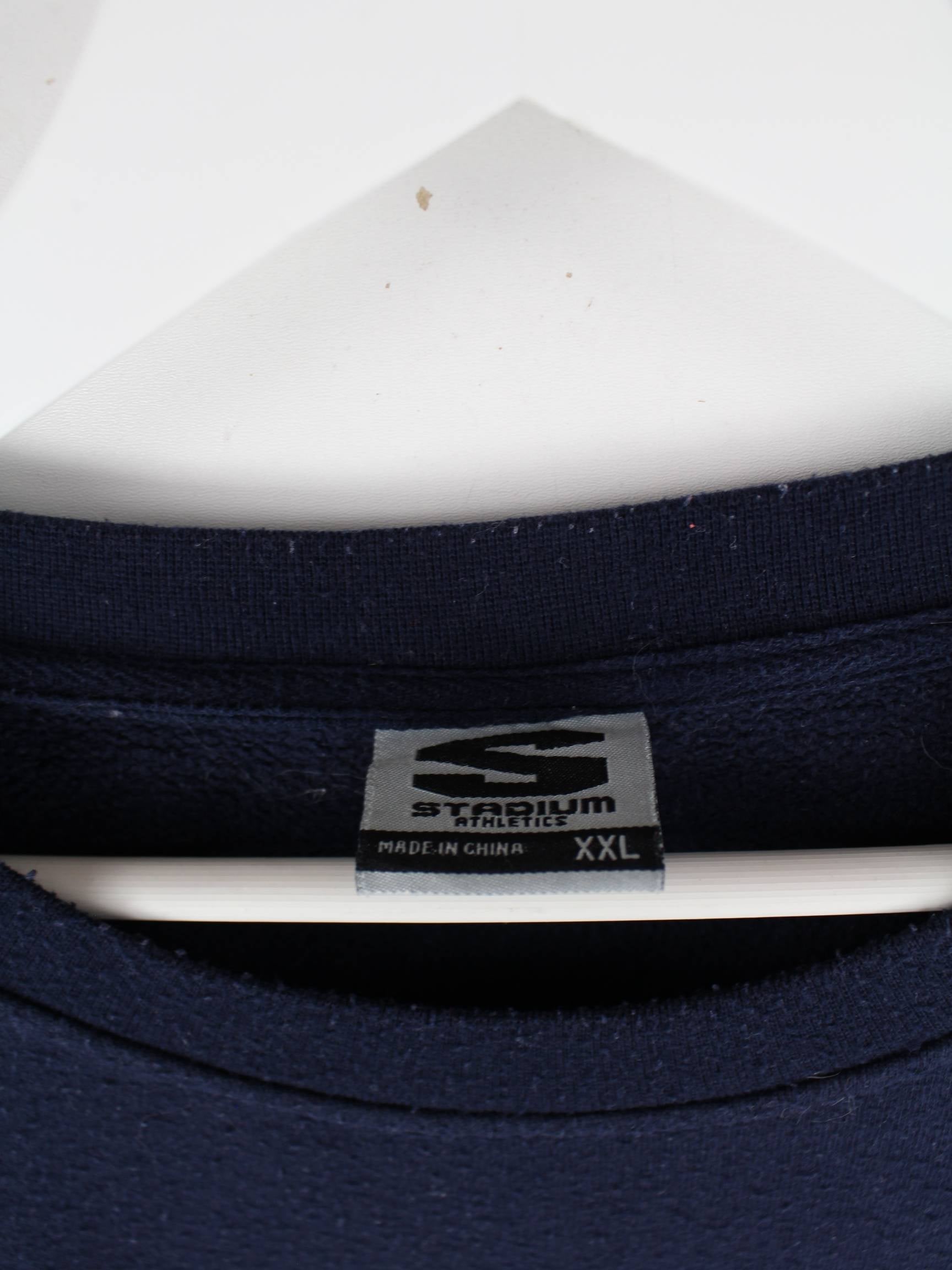 Blauer Sweater mit gesticktem Logo vom Label Stadium in Größe XXL. Er ist aus einer Baumwollmischung gefertigt und in gutem Zustand zu bekommen.