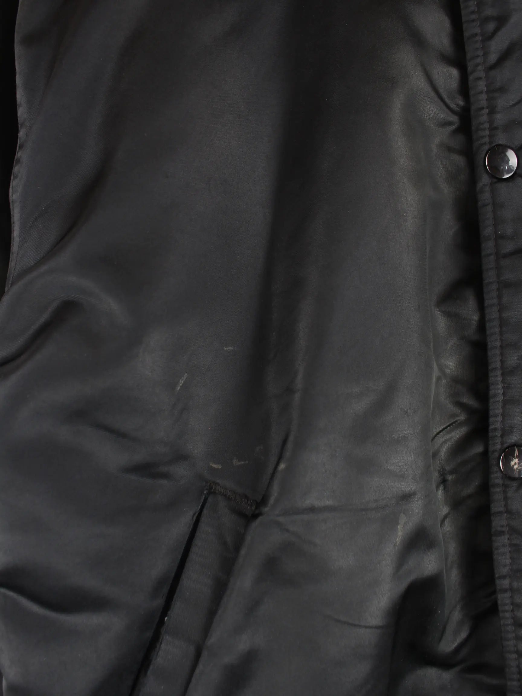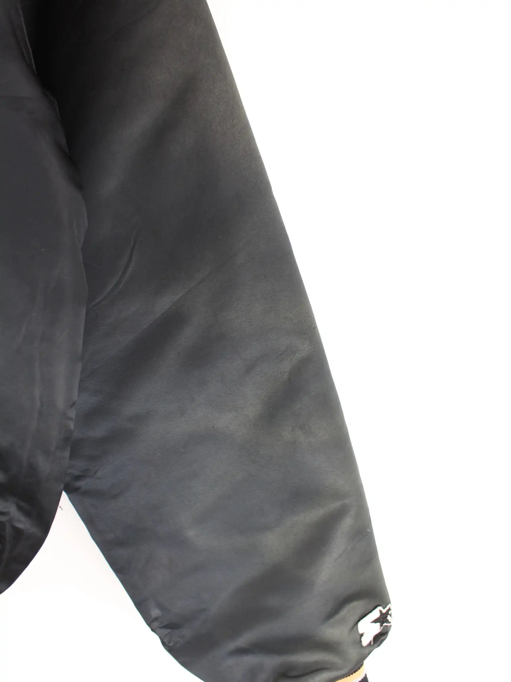 Jacke vom Label Starter in Größe L aus den 90'ern. Sie ist aus Synthetik gefertigt und in Schwarz im Angebot.