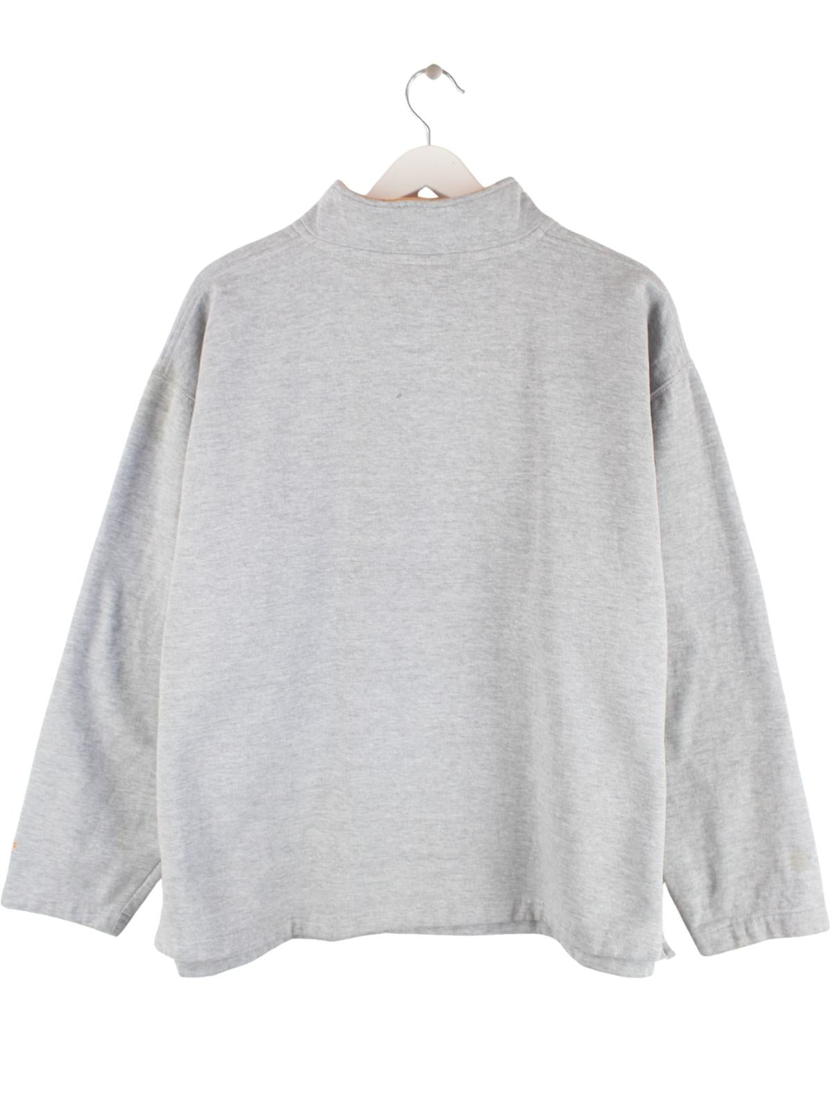Grauer Sweater mit halbem Reißverschluß vom Brand Starter in Größe XL. Er ist aus einer Baumwollmischung . Den Zustand würden wir als 'In Ordnung' bezeichnen (vergl. Bilder).
