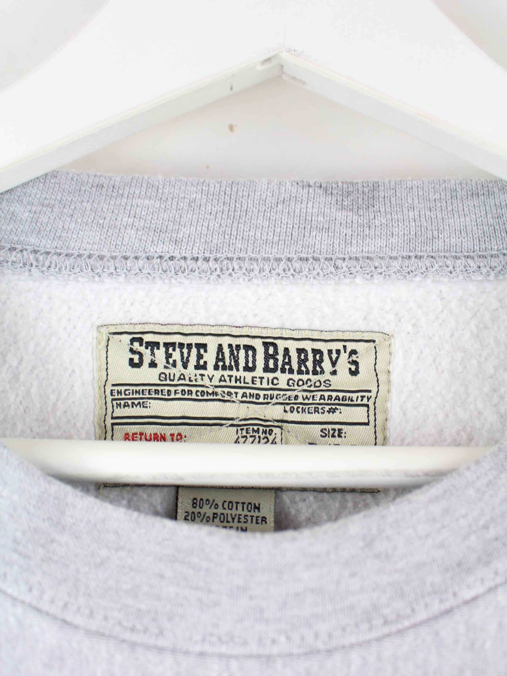 Grauer Sweater mit gestickten Motiven vom Label Steve & Barry's aus den 90'ern in Größe M. Er ist aus einer Baumwollmischung produziert und in gutem Zustand im Bestand.