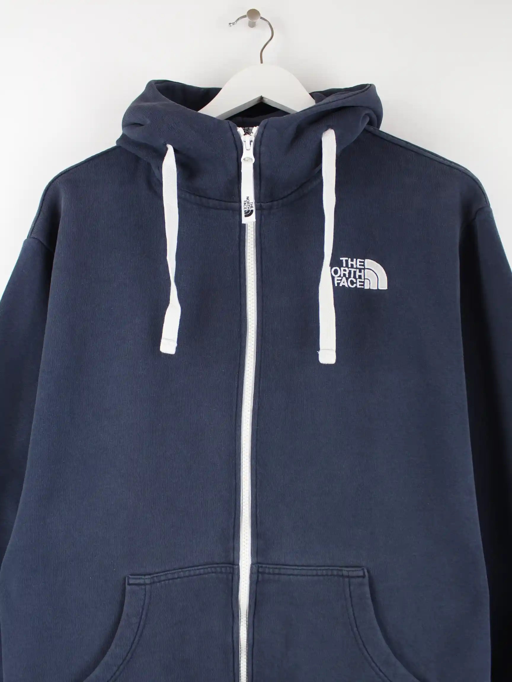 Blauer Kapuzenpulli mit Reißverschluss der Marke The North Face in Größe XL. Er ist aus einer Baumwollmischung hergestellt und in sehr gutem Zustand zu bekommen.