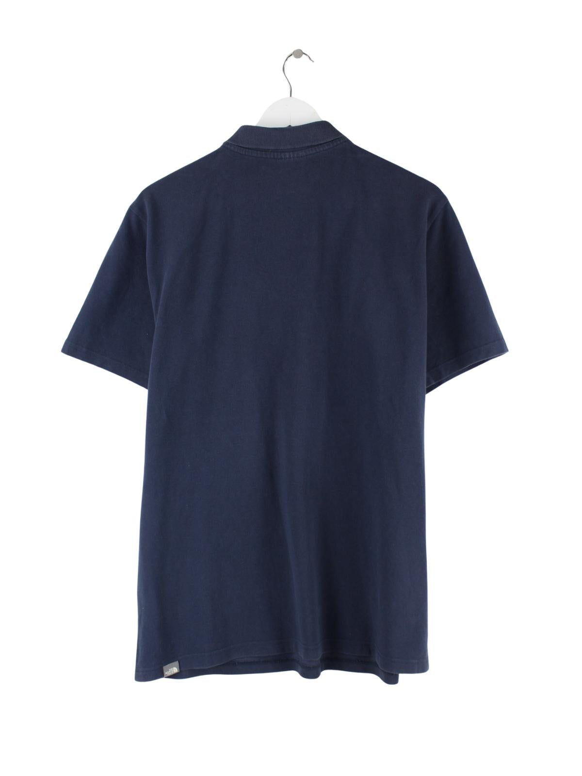 Blaues Poloshirt der Marke The North Face in Größe L. Es ist aus Baumwolle hergestellt und in gutem Zustand vorrätig.