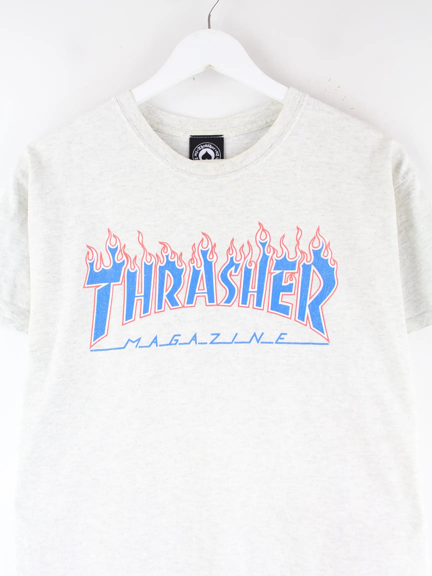 T-Shirt von Thrasher in Größe M. Es ist aus Baumwolle und in Grau in Stock. Mit schickem Print.