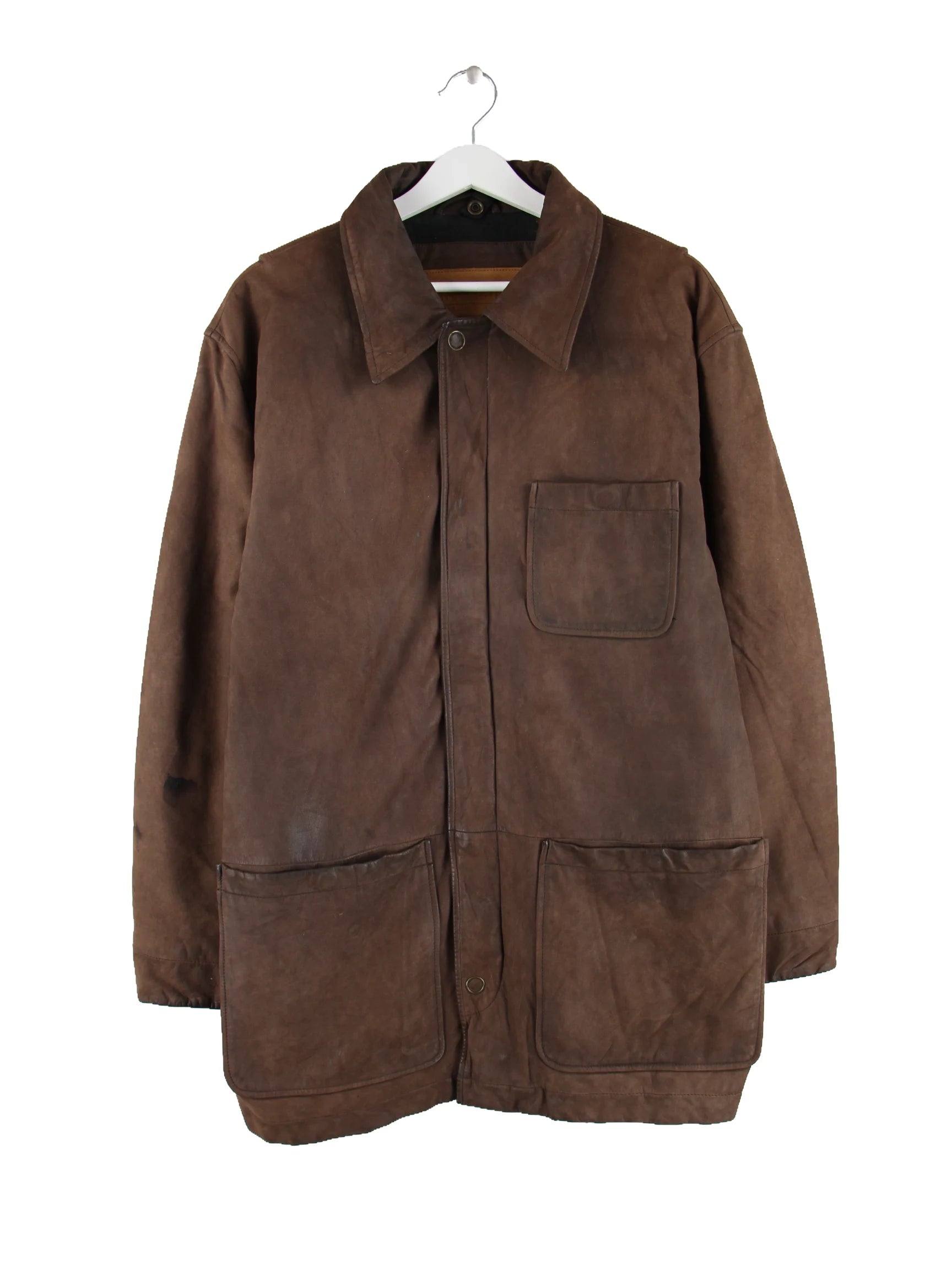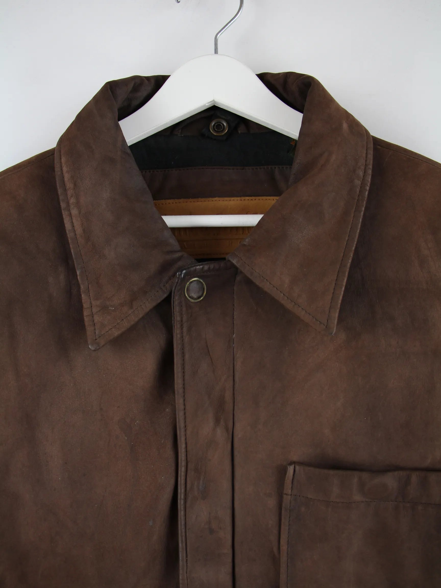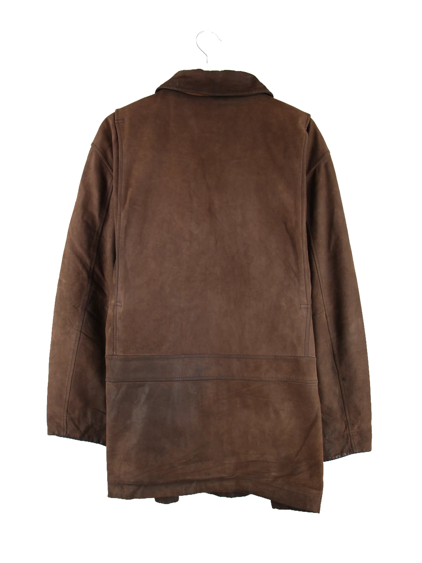 Braune Jacke vom Label Timberland aus den 90'ern in Größe M. Sie ist aus Leder hergestellt. Den Zustand würden wir als 'In Ordnung' bezeichnen (vergl. Bilder).
