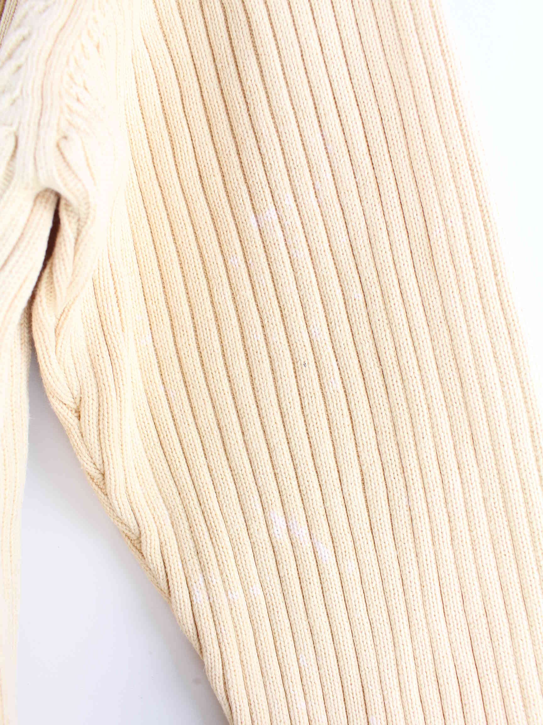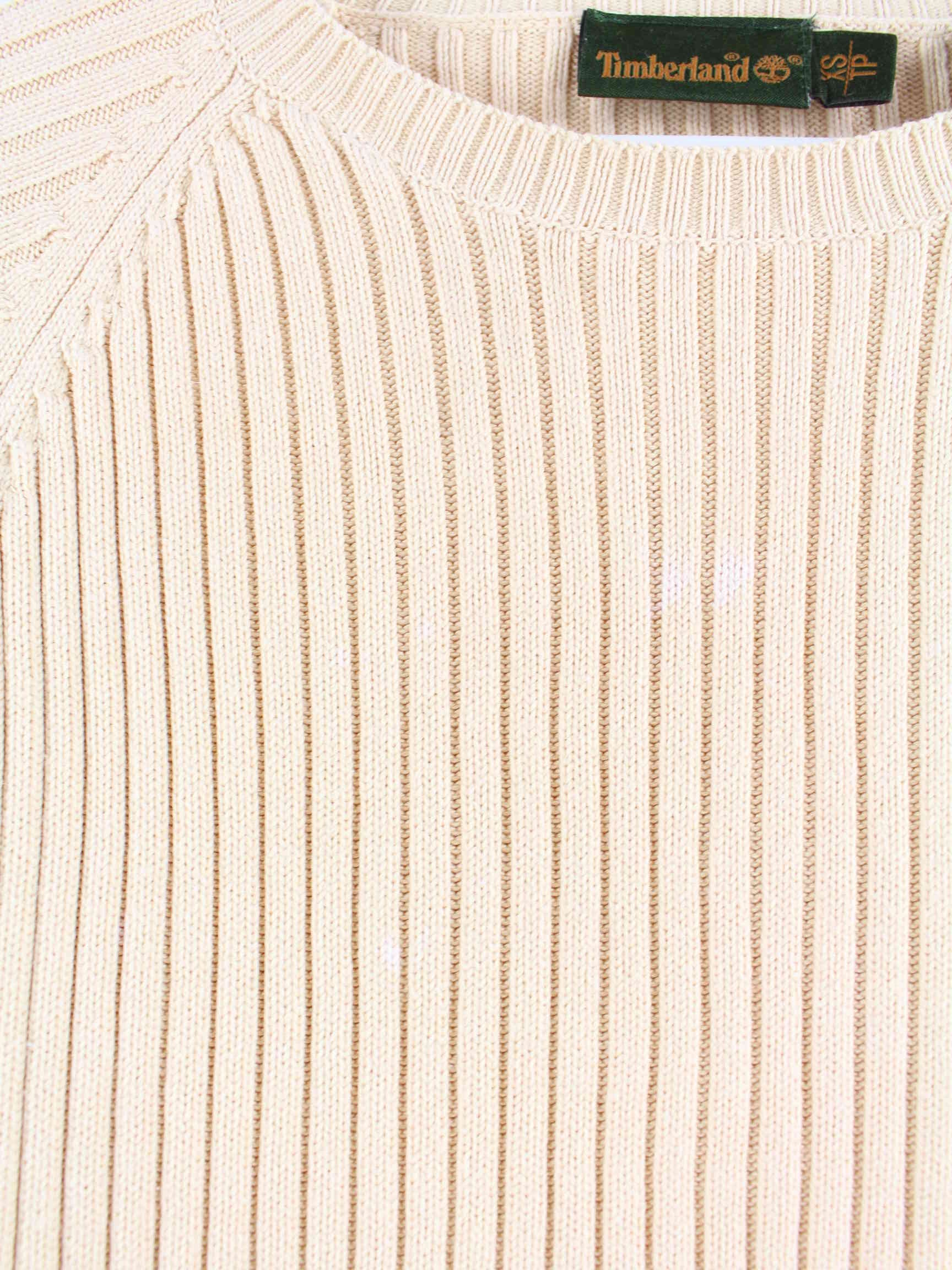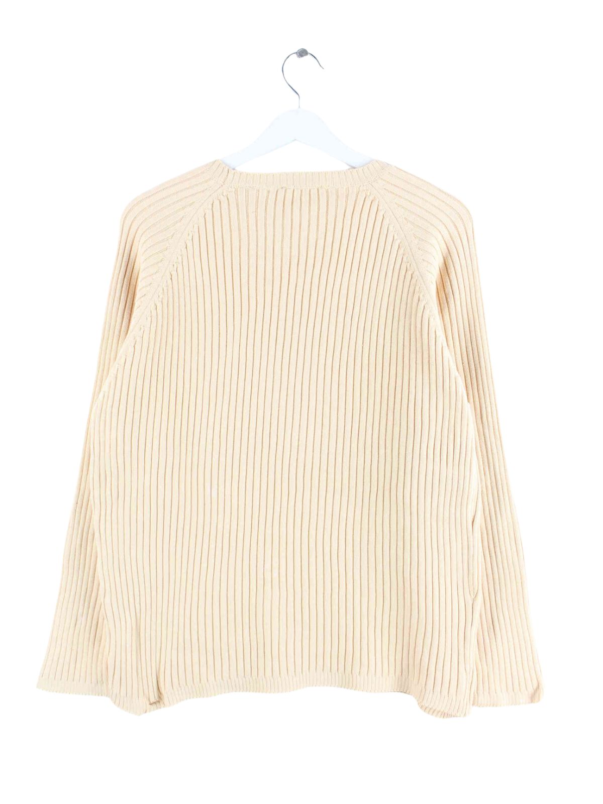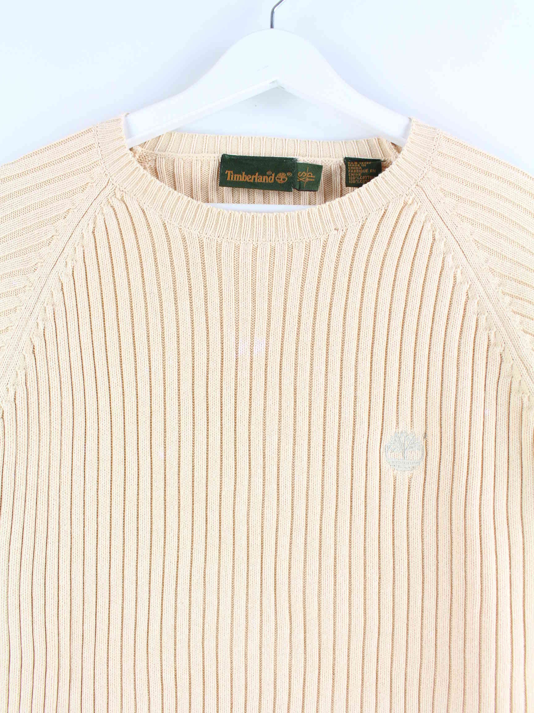 Beigefarbener Pullover mit Stickereien aus dem Hause Timberland in Größe M. Er ist aus Baumwolle produziert und in gutem Zustand bei uns vorrätig.