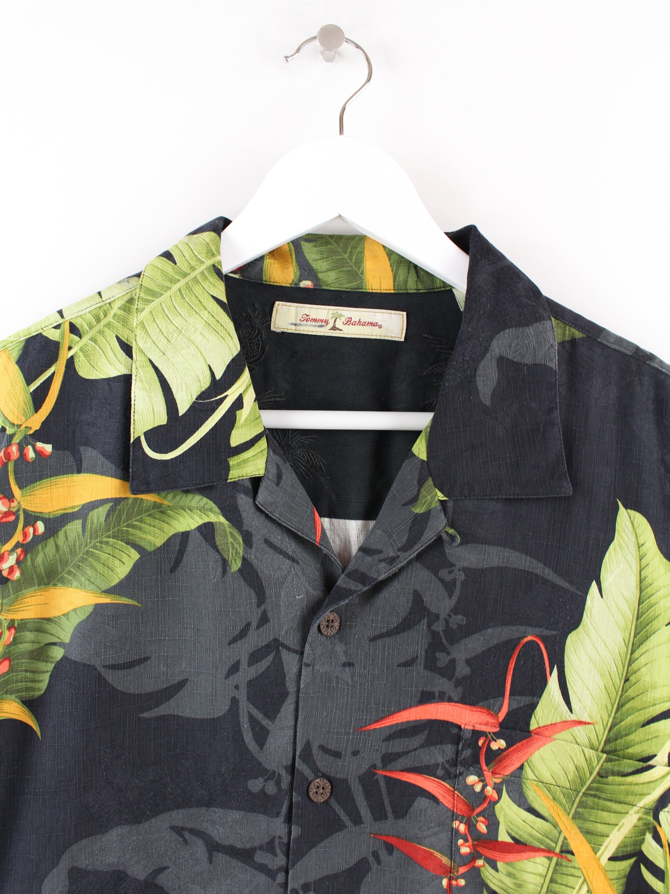 Tommy Bahama 100% Seide Hawaii Hemd Schwarz XL
