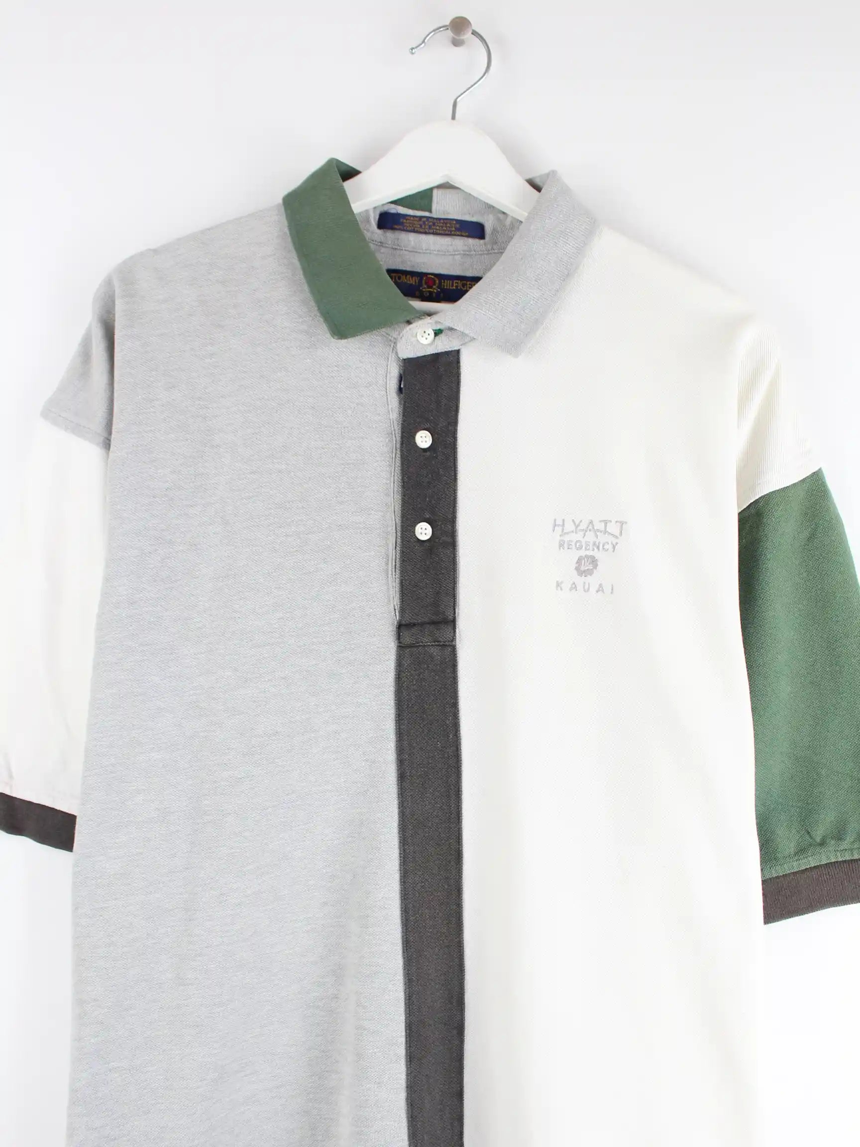 Poloshirt der Marke Tommy Hilfiger in Größe L. Es ist aus Baumwolle und in Grau bei uns vorrätig.