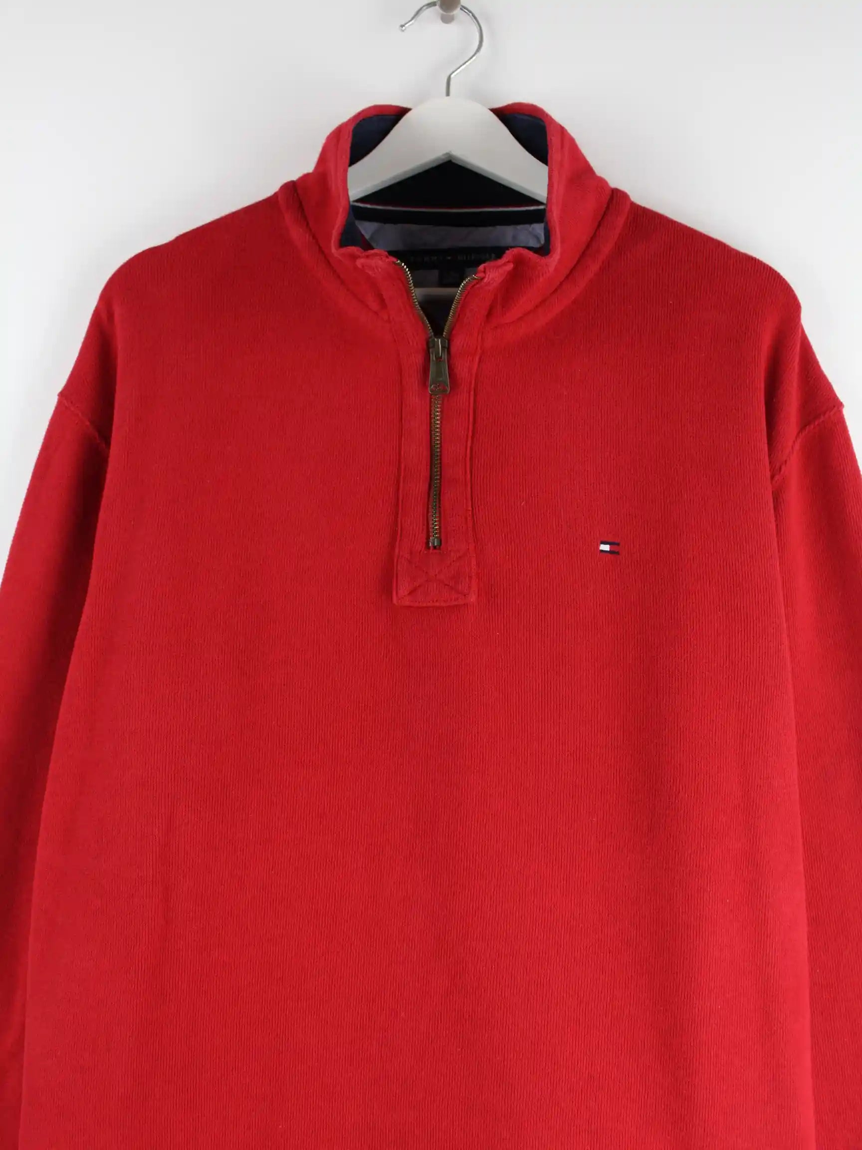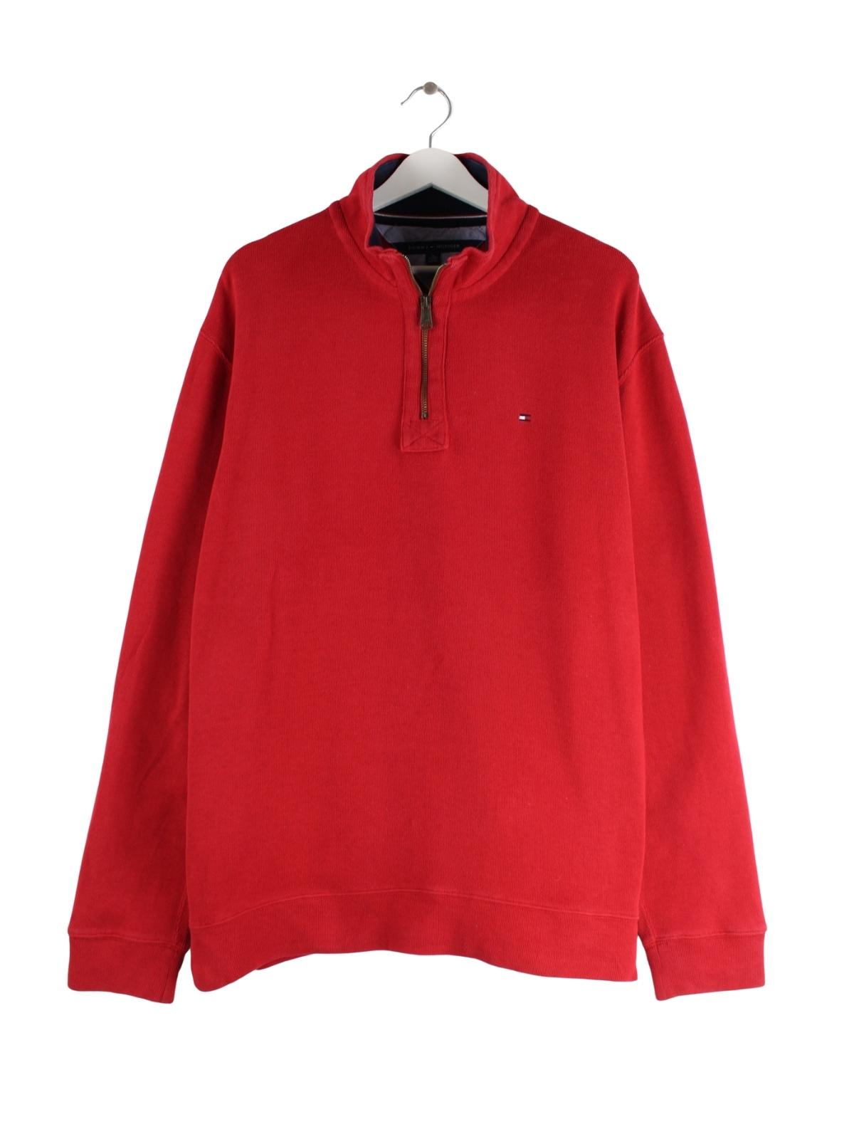 Roter Sweater mit halbem Reißverschluß der Brand Tommy Hilfiger in Größe 3XL. Er ist aus einer Baumwollmischung und in sehr gutem Zustand zu haben.