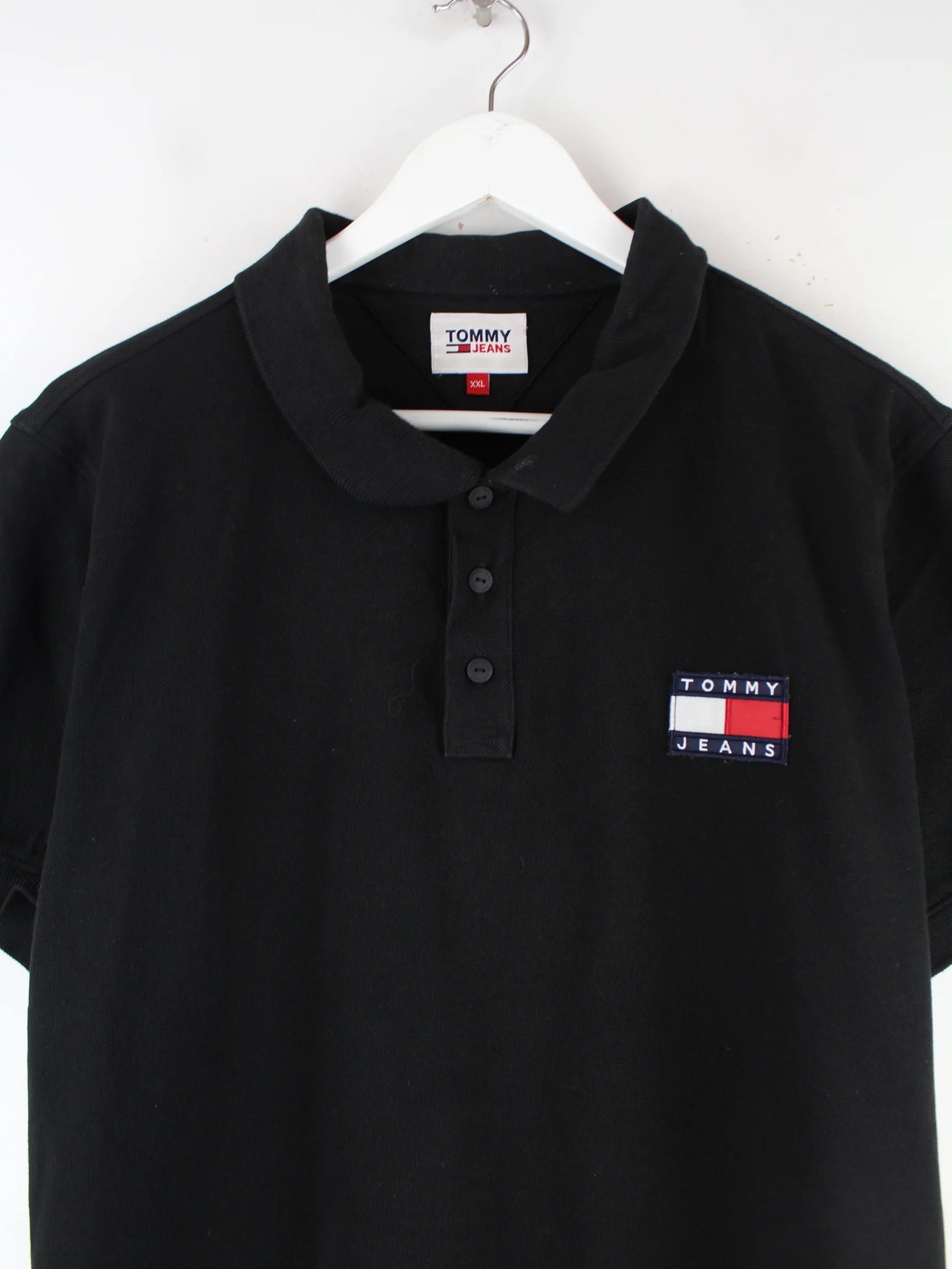 Schwarzes Poloshirt vom Label Tommy Hilfiger in Größe XXL. Es ist aus Baumwolle gemacht und in sehr gutem Zustand im Angebot.