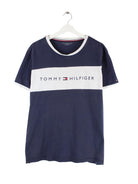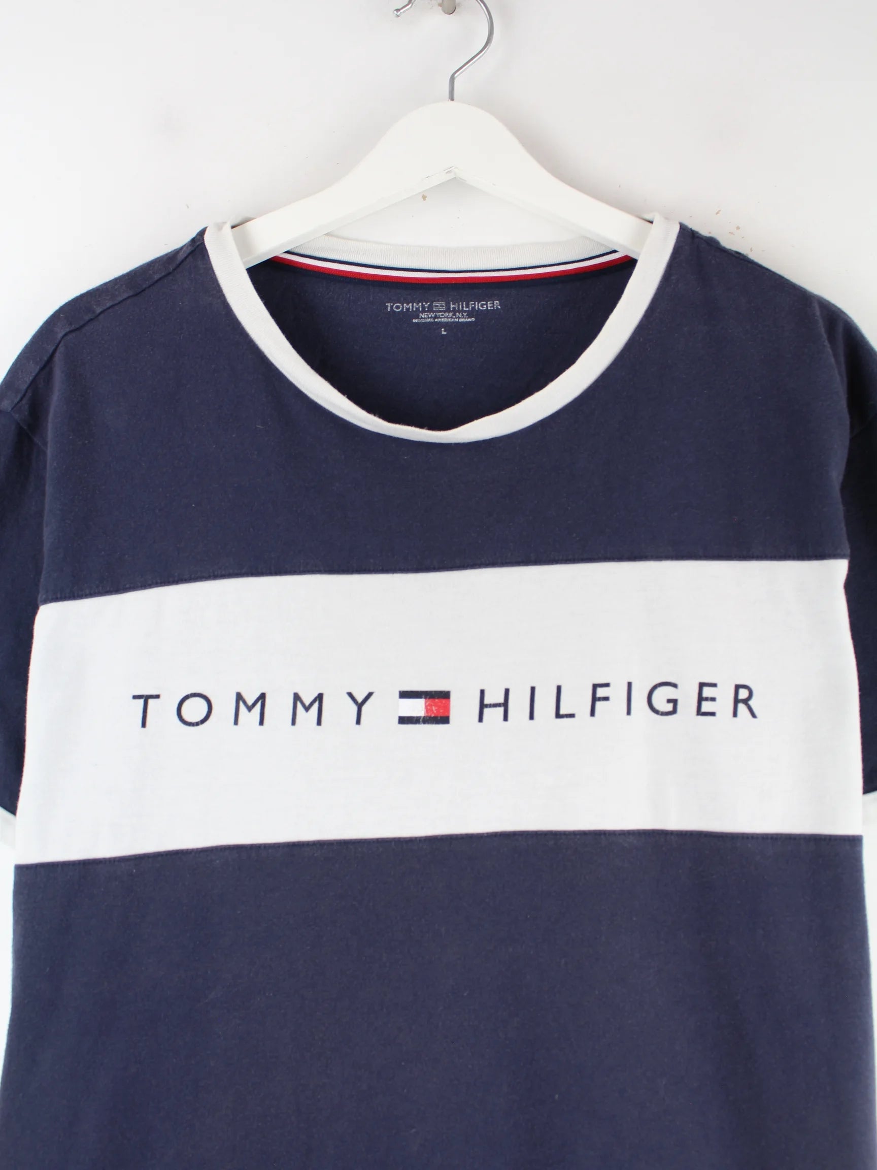 Blaues T-Shirt des Labels Tommy Hilfiger in Größe L. Es ist aus Baumwolle hergestellt und in gutem Zustand vorrätig. Mit schönem Print.