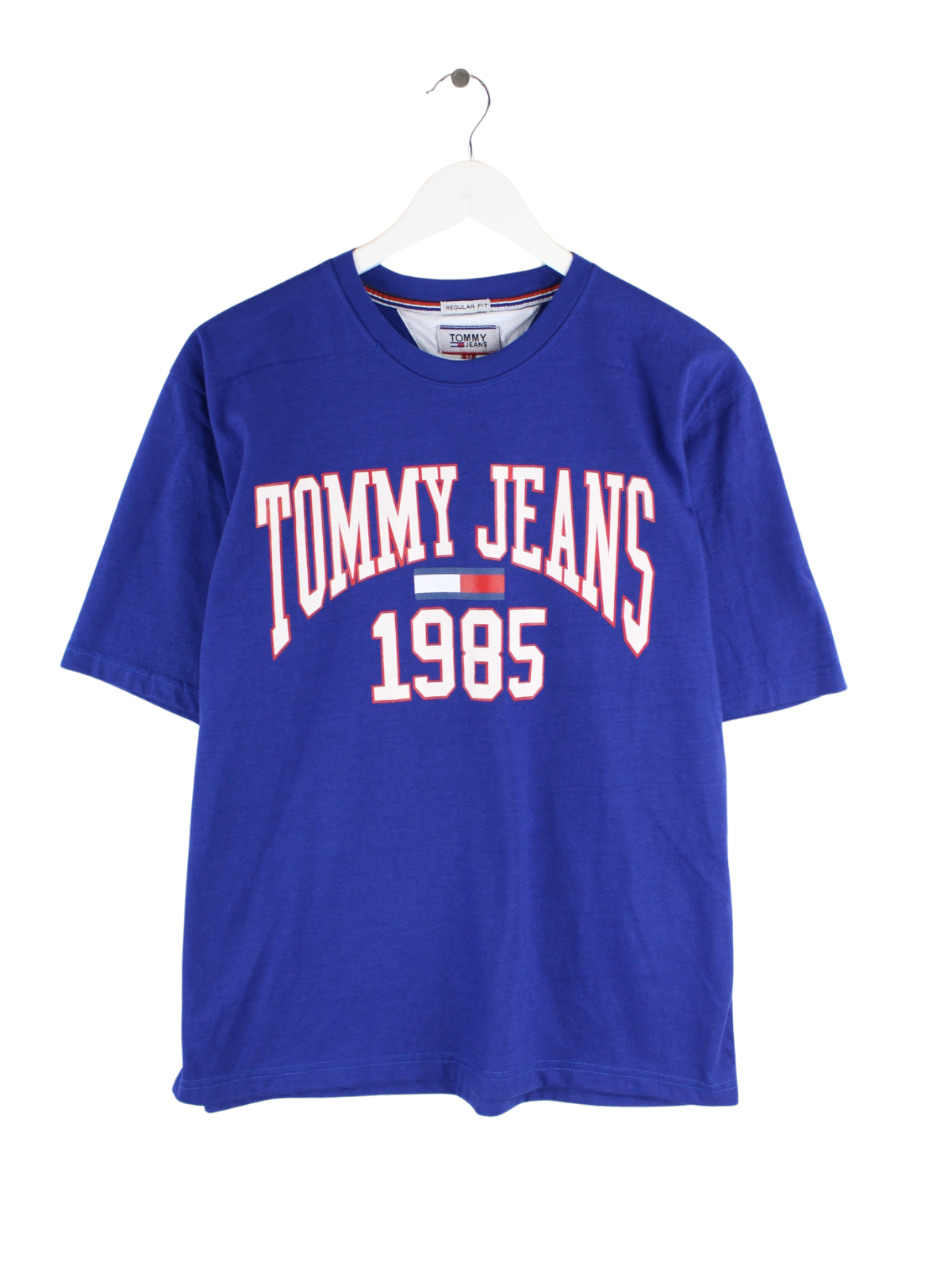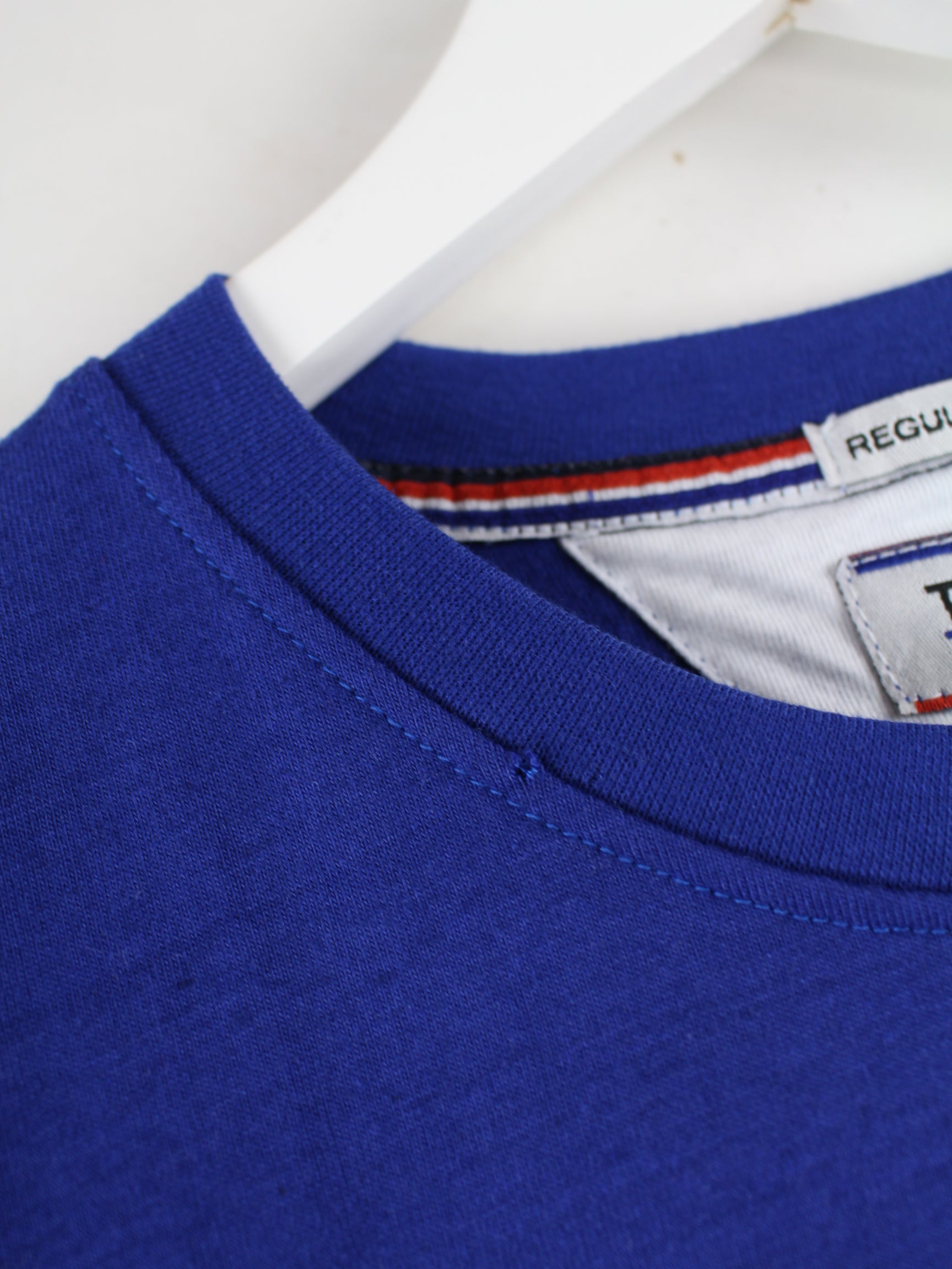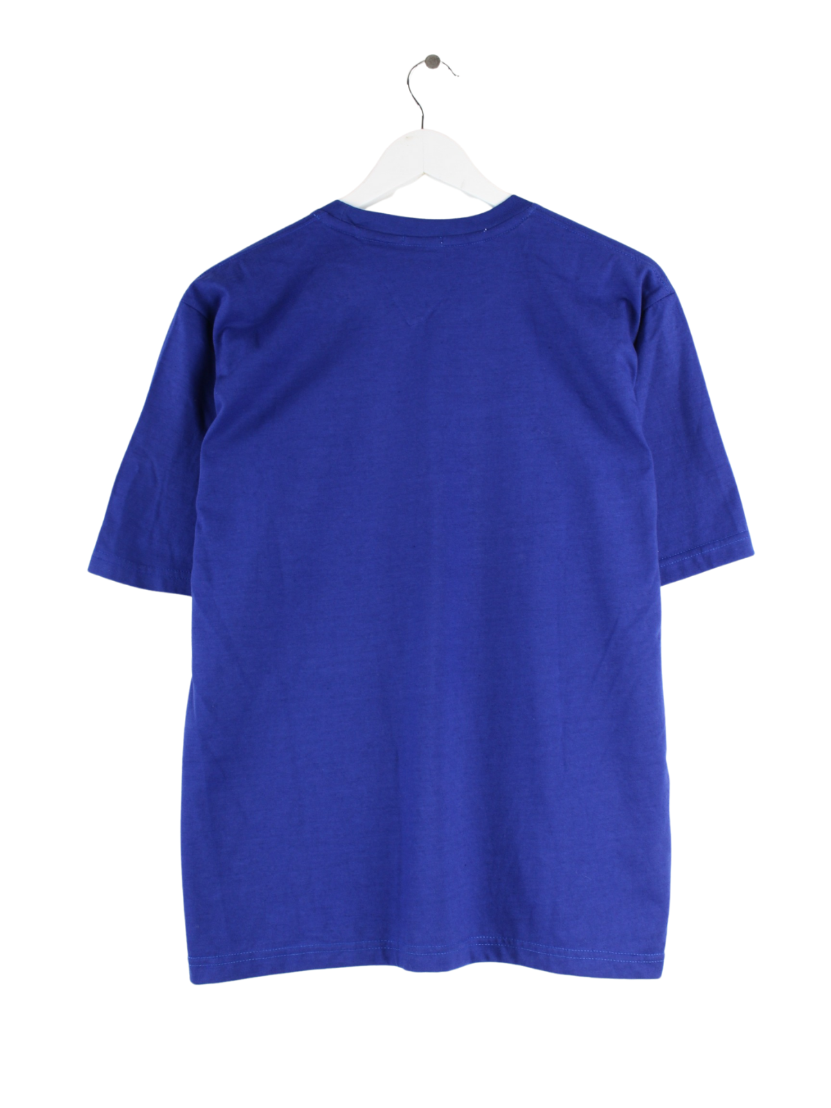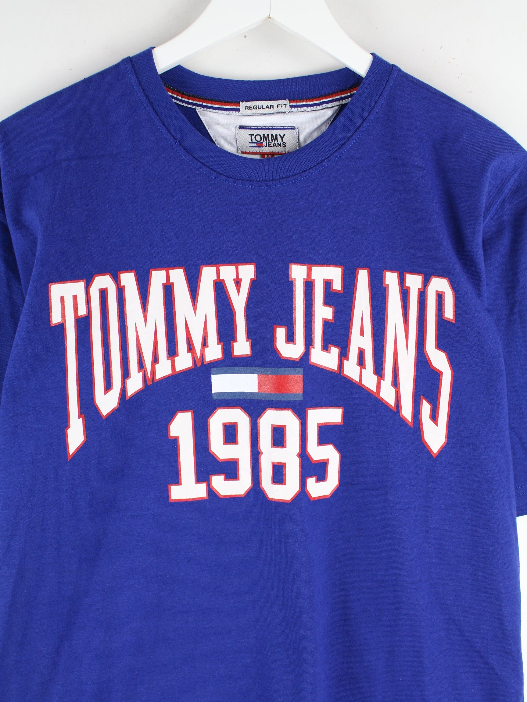 Blaues T-Shirt vom Label Tommy Hilfiger in Größe M. Es ist aus Baumwolle hergestellt und in gutem Zustand im Bestand. Mit seltenem Print.
