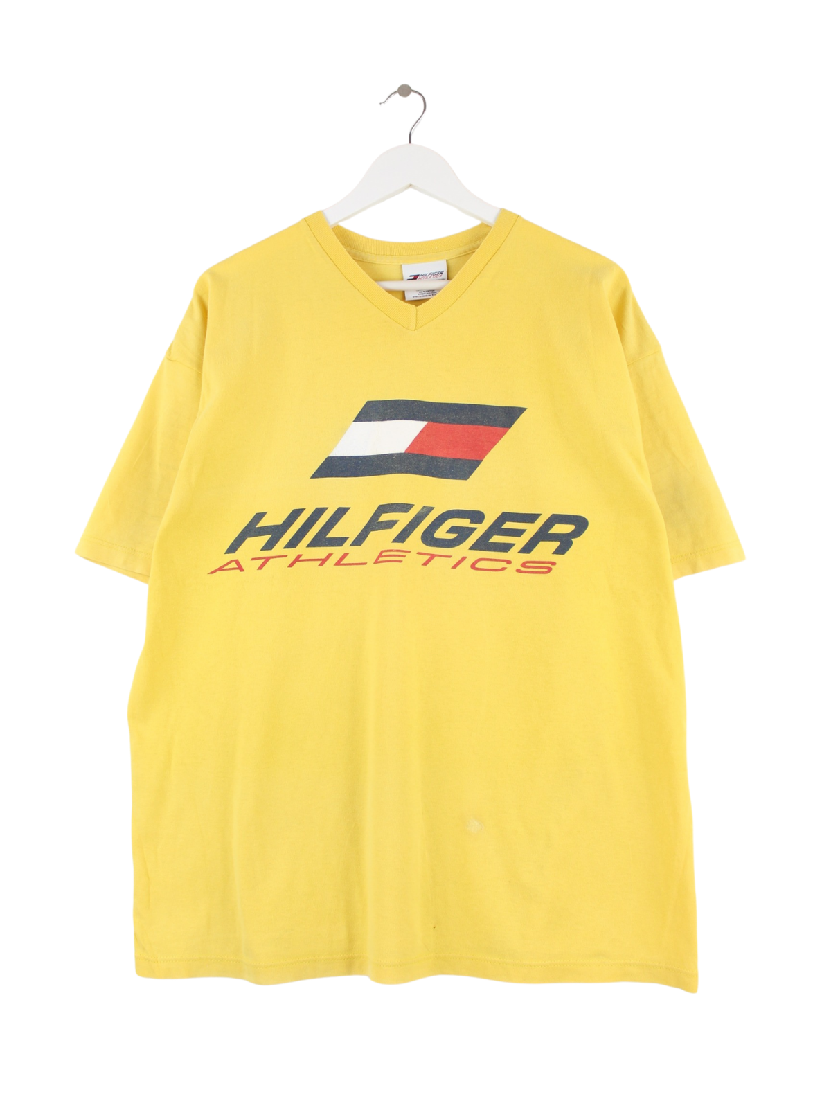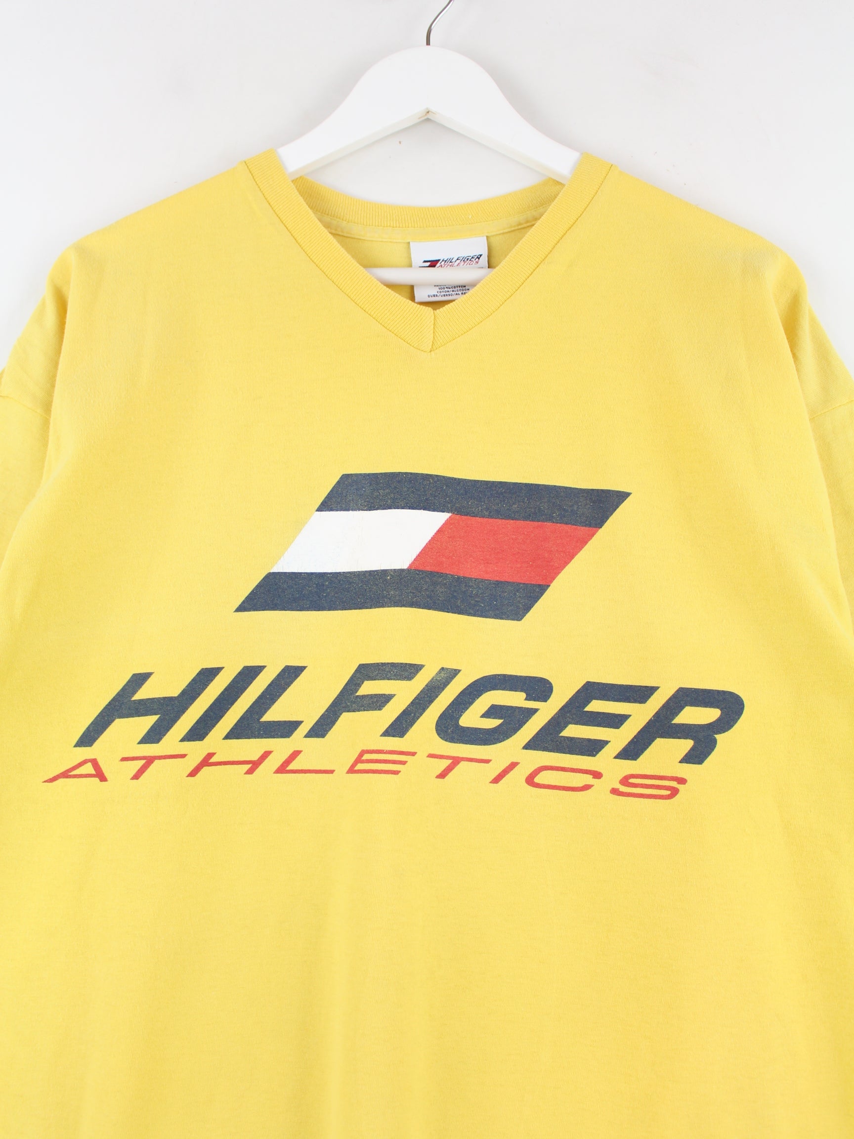 Gelbes T-Shirt vom Brand Tommy Hilfiger in Größe XL. Es ist aus Baumwolle und in gutem Zustand zu bekommen. Mit schickem undefined Print.