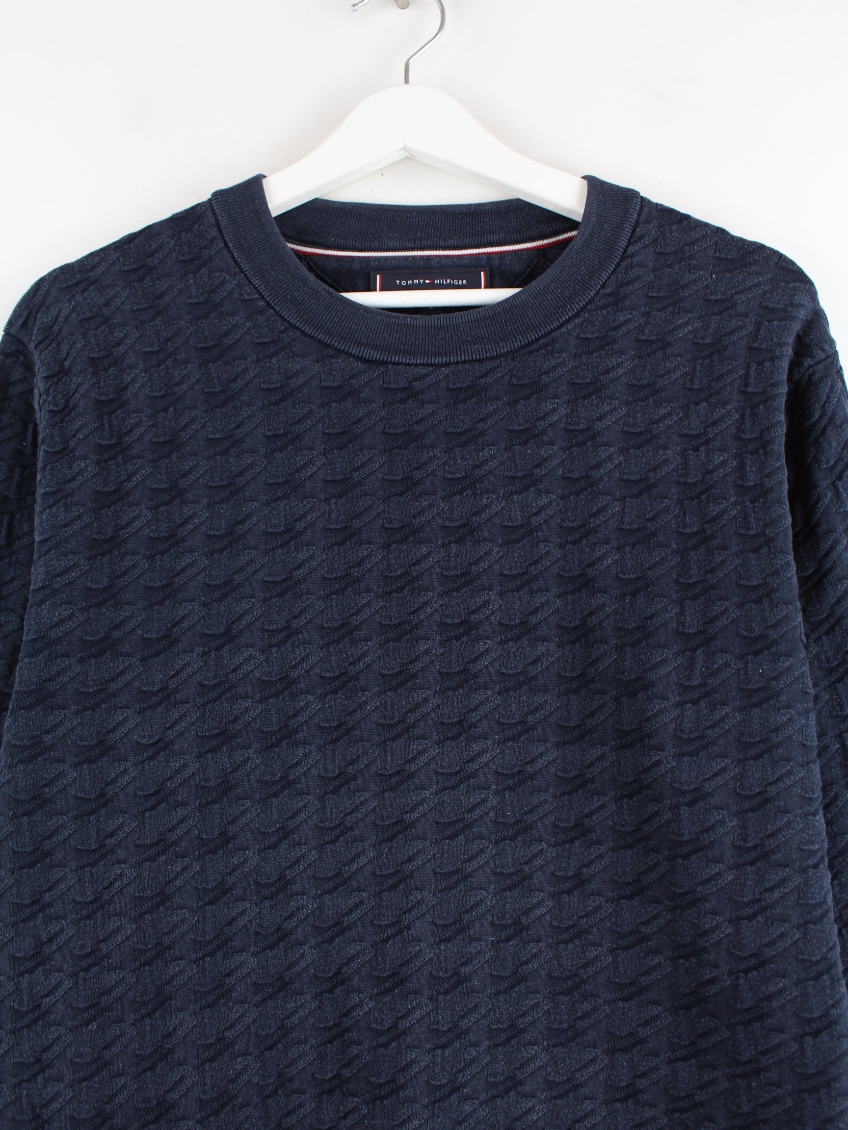 Pullover des Labels Tommy Hilfiger in Größe L. Er ist aus Baumwolle angefertigt und in Blau bei uns zu bekommen.