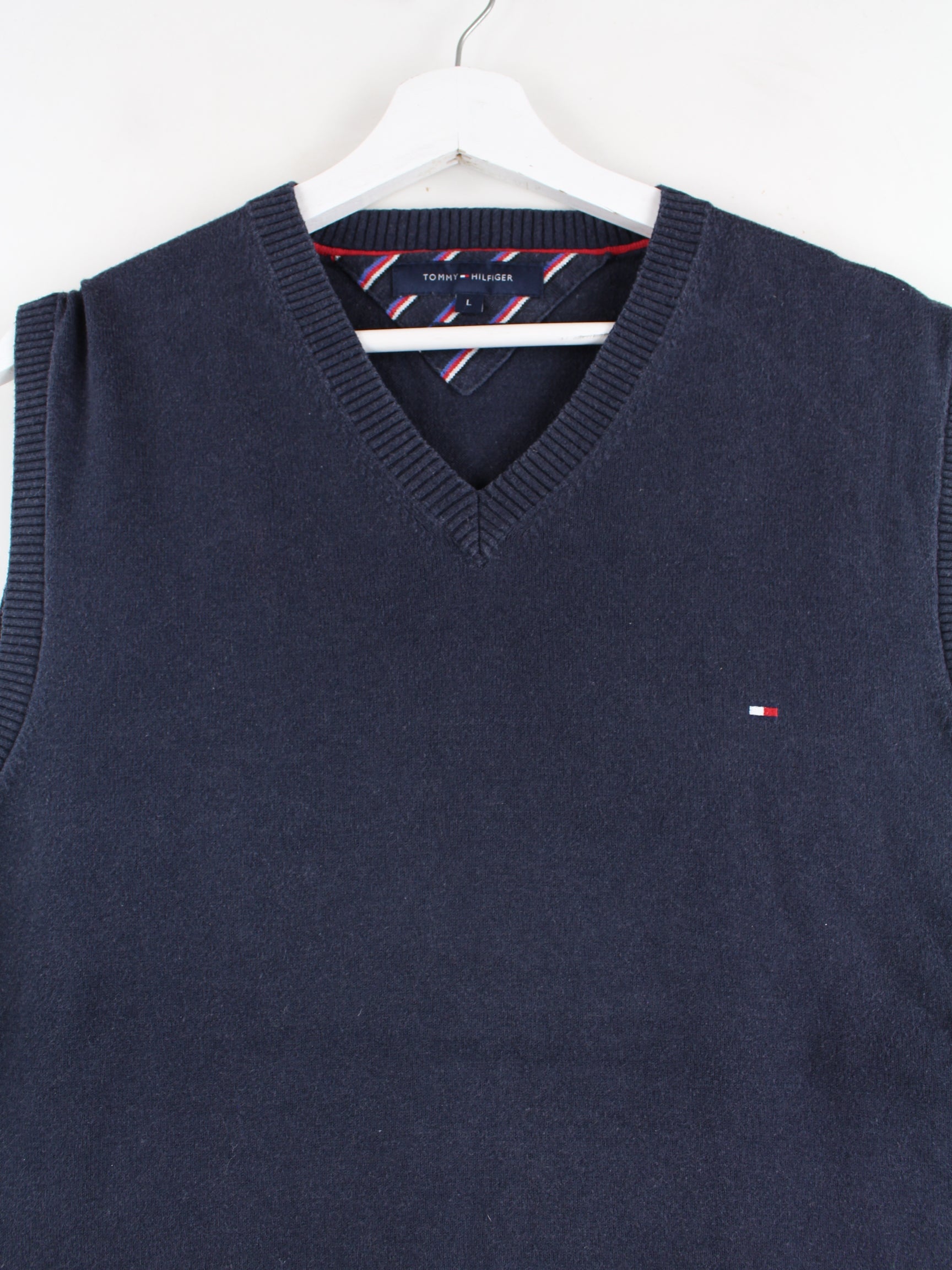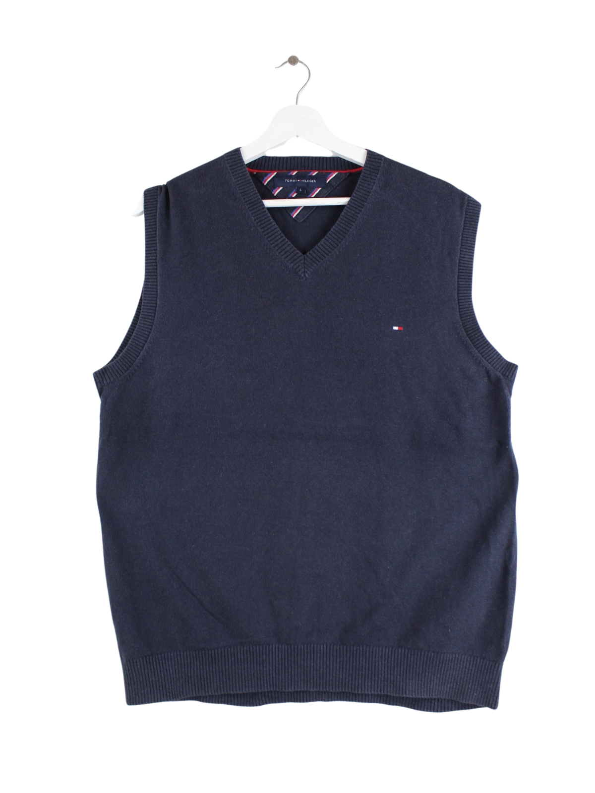 Pullunder aus dem Hause Tommy Hilfiger in Größe L. Er ist aus Baumwolle angefertigt und in Blau lieferbar.