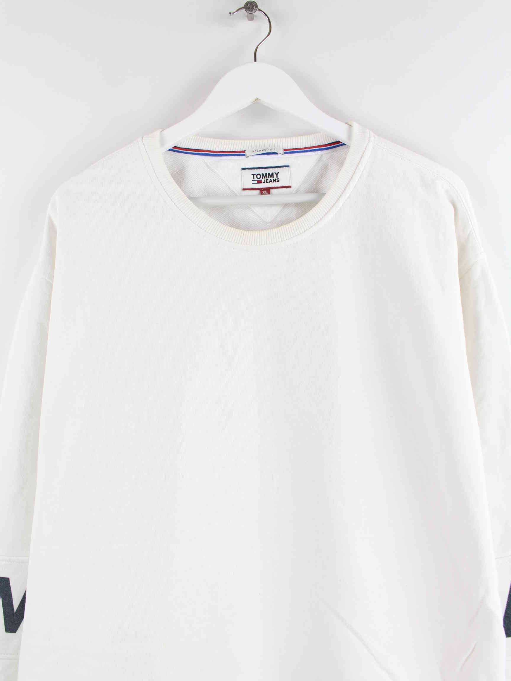 Weißer Sweater der Brand Tommy Hilfiger in Größe XL. Er ist aus einer Baumwollmischung angefertigt und in gutem Zustand in Stock.