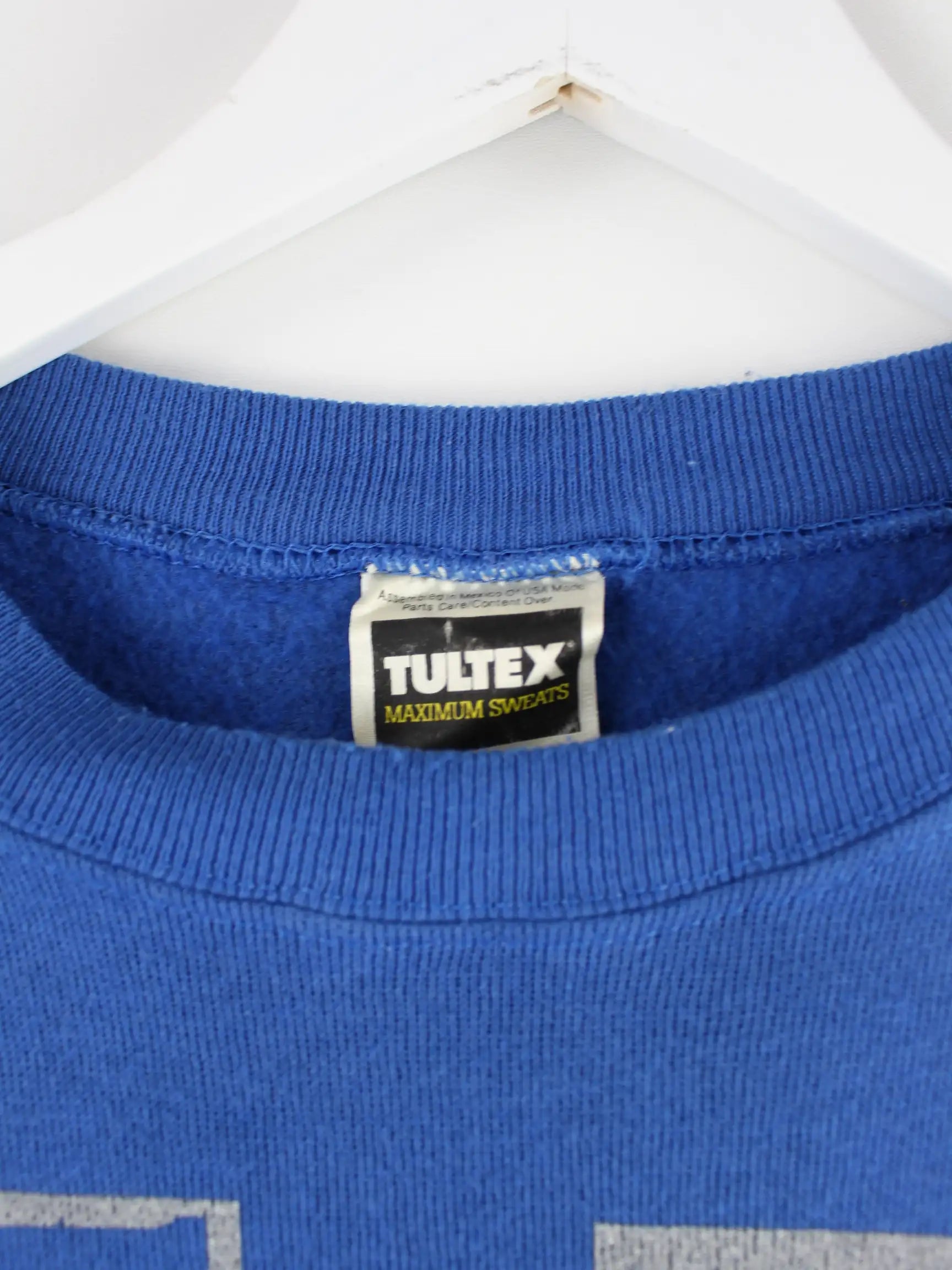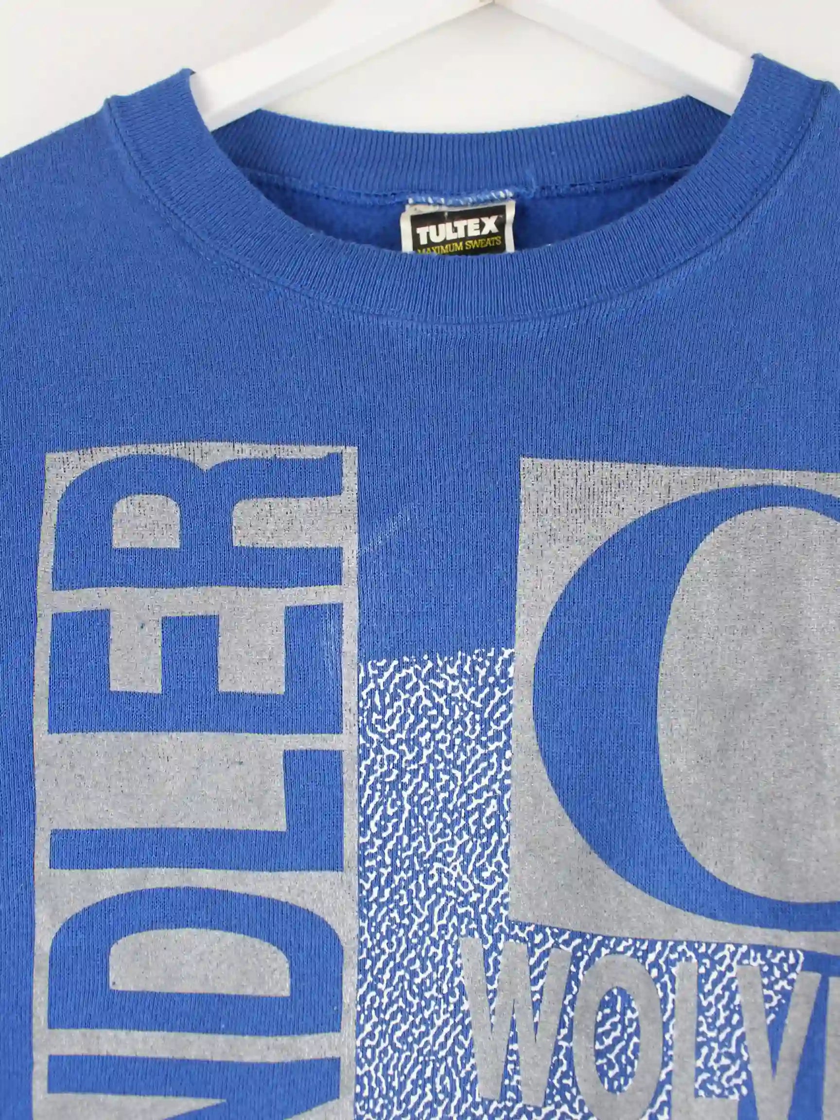 Sweater der Brand Tultex in Größe XL aus den 90'ern. Er ist aus einer Baumwollmischung hergestellt und in Blau zu haben. Mit seltenem Wolves Print.