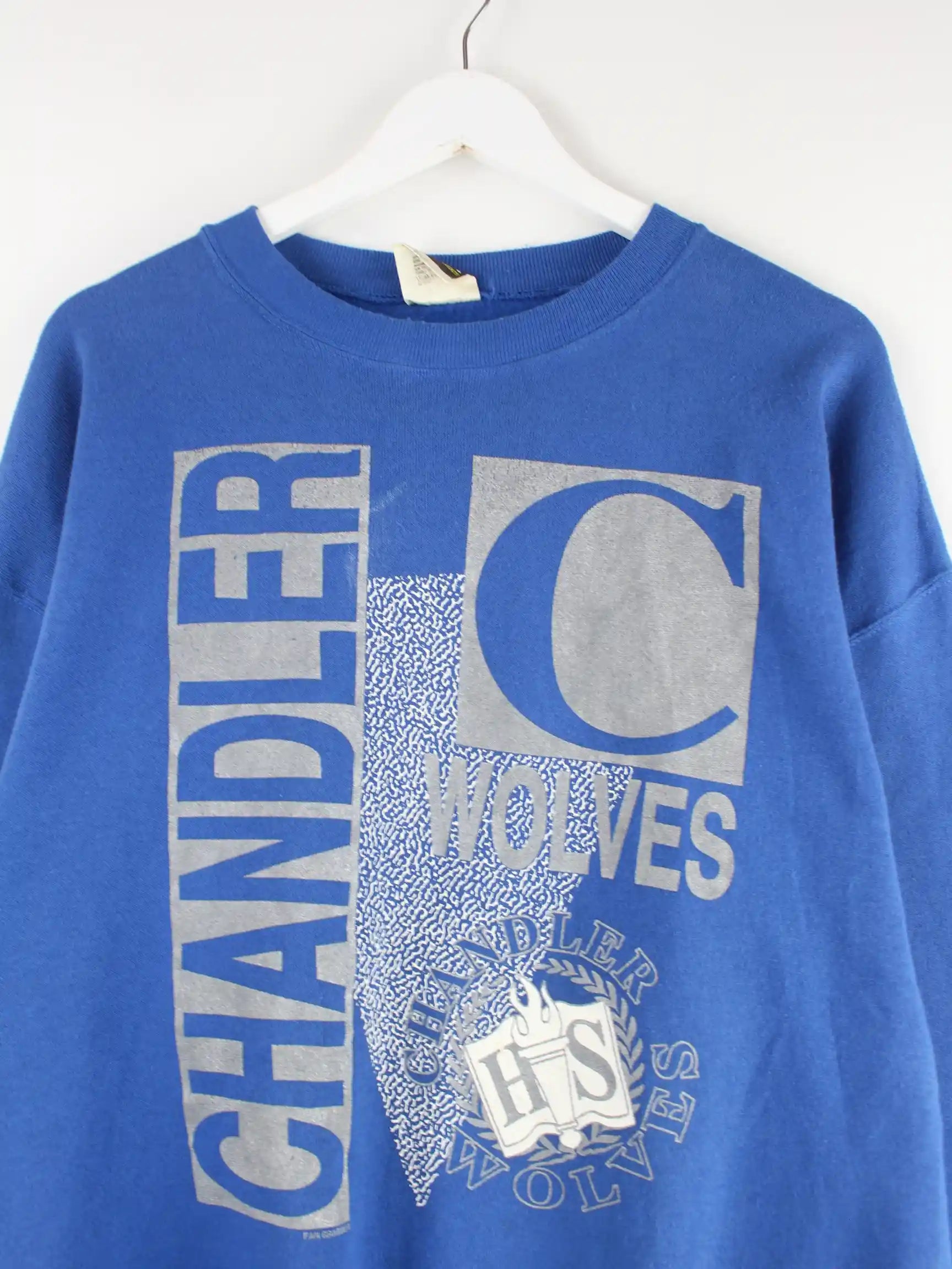 Tultex 90s Vintage Chandler Wolves Print Sweater Blau XL