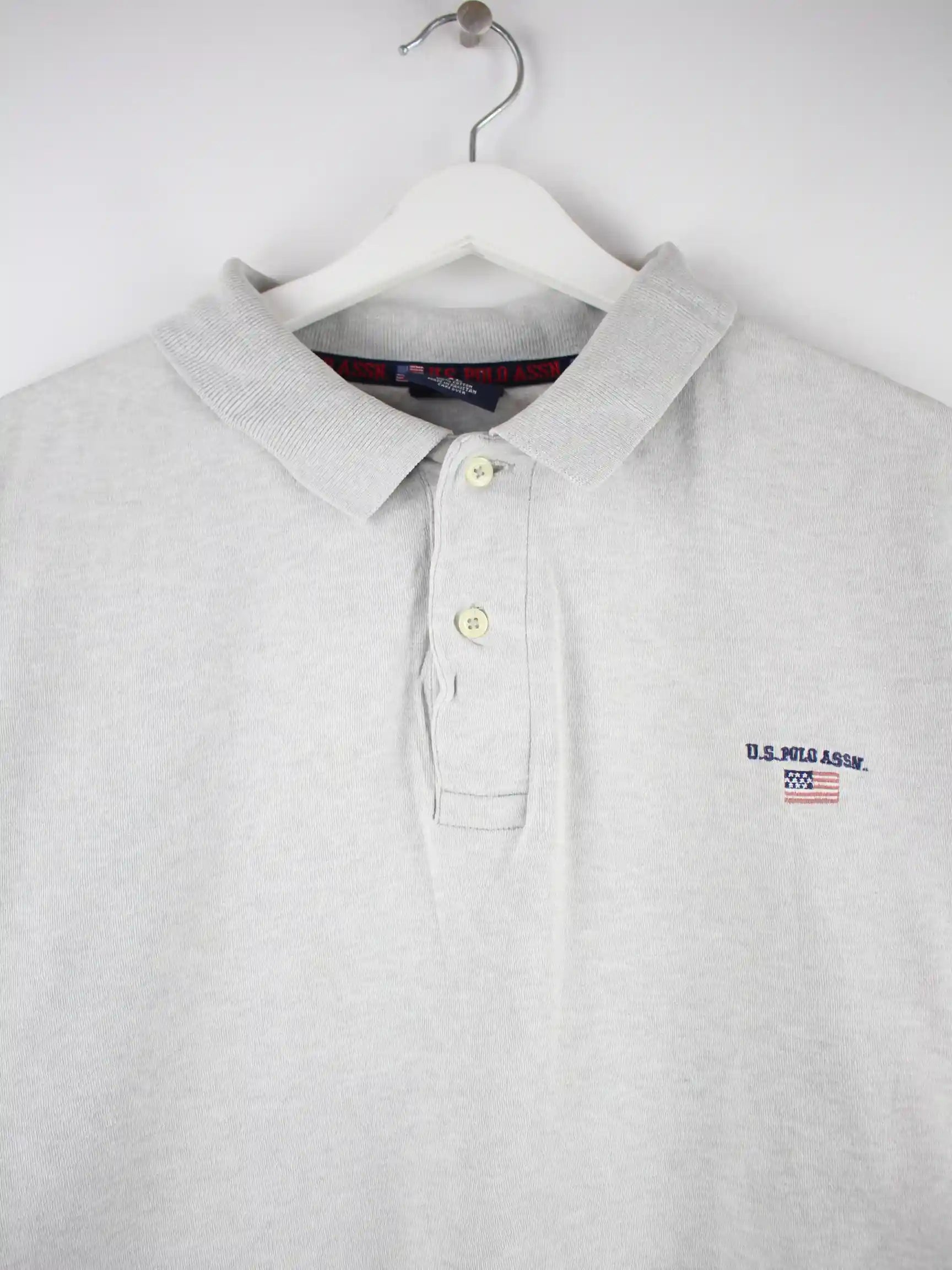 Graues Poloshirt aus dem Hause U.S. Polo ASSN. in Größe XL. Es ist aus Baumwolle hergestellt und in sehr gutem Zustand bei uns zu bekommen.
