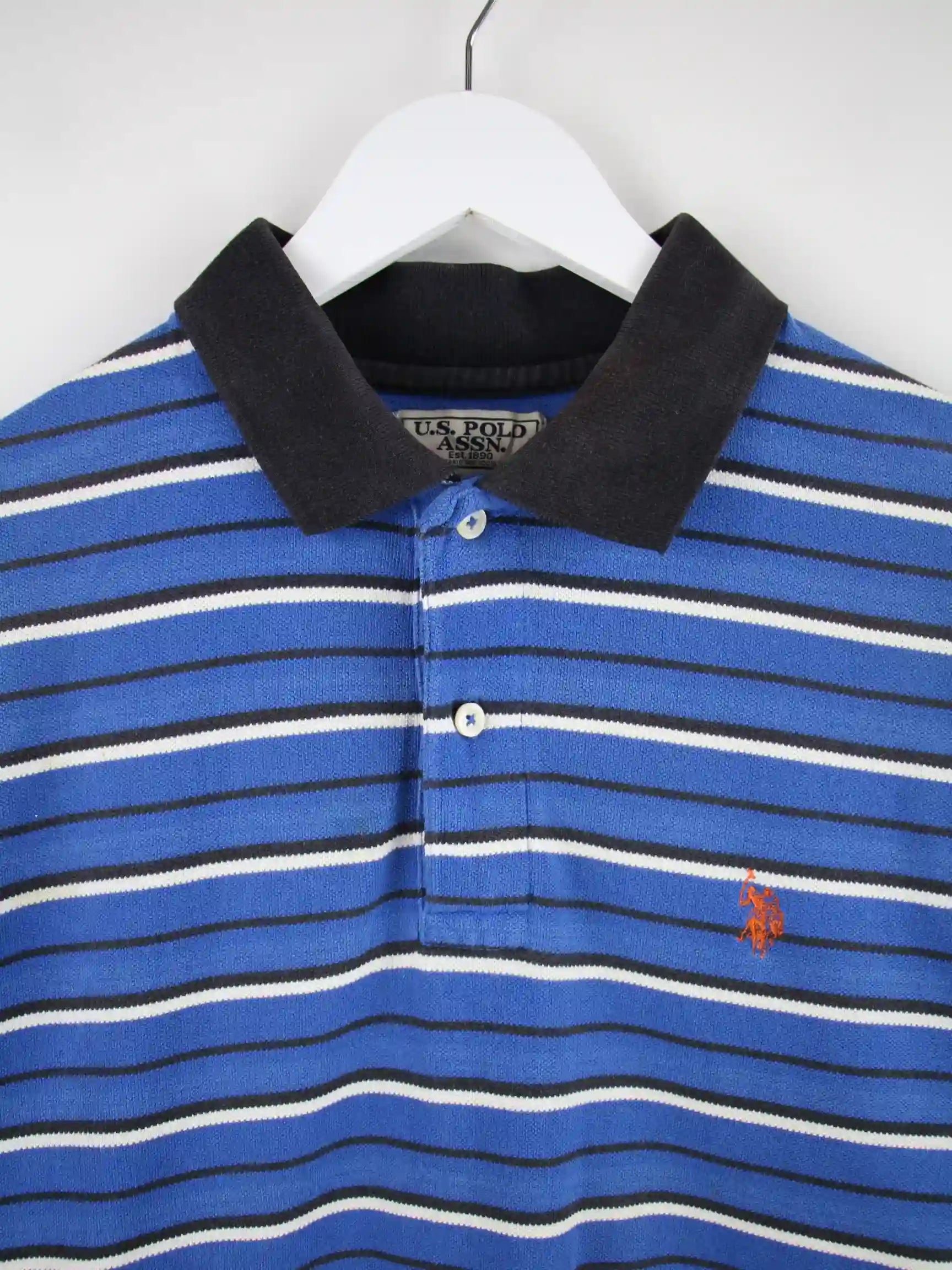 Blaues Poloshirt von U.S. Polo ASSN. in Größe L. Es ist aus Baumwolle gemacht und in sehr gutem Zustand im Angebot.
