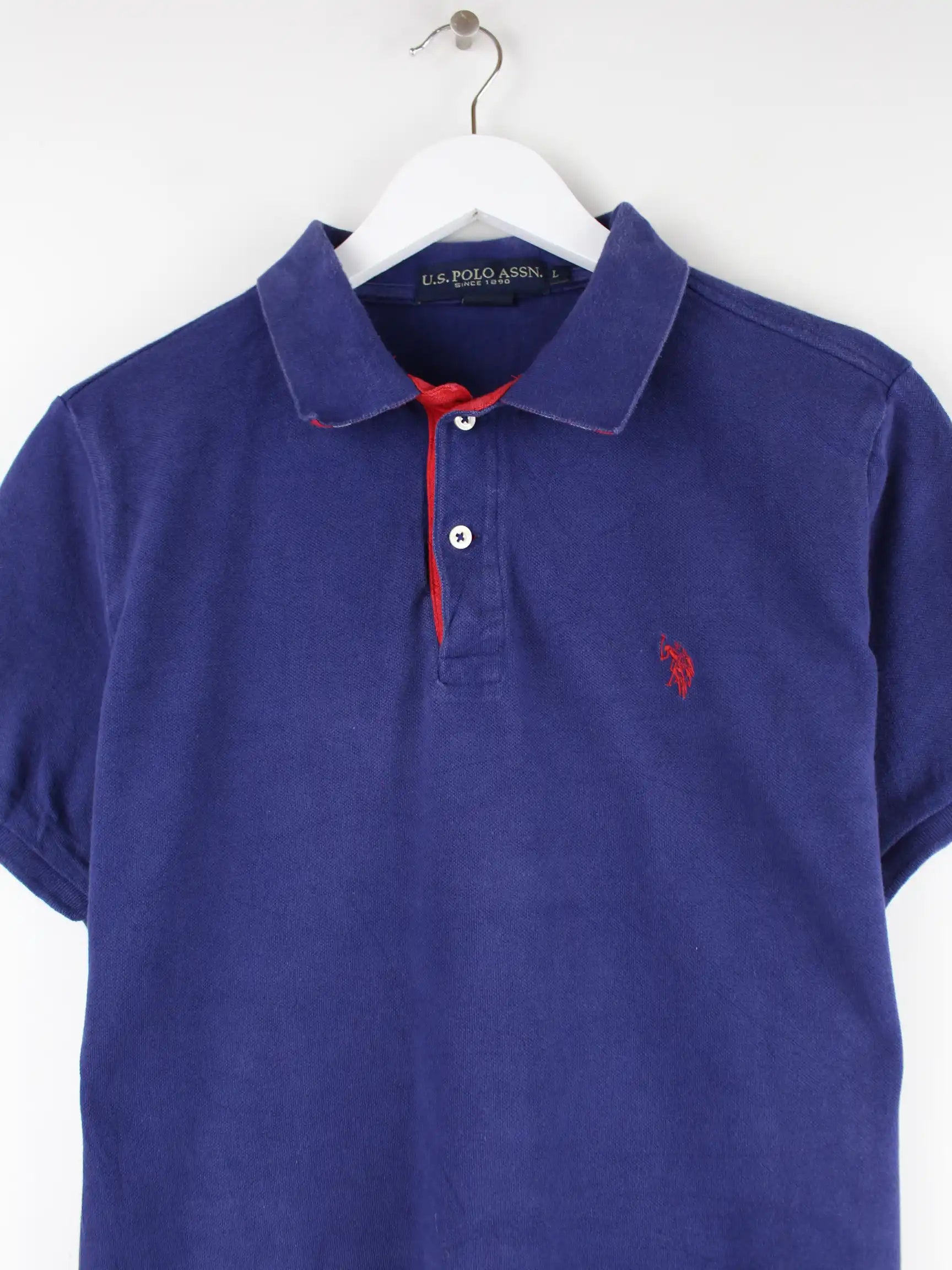 Poloshirt aus dem Hause U.S. Polo ASSN. in Größe M. Es ist aus Baumwolle gefertigt und in Blau vorrätig.