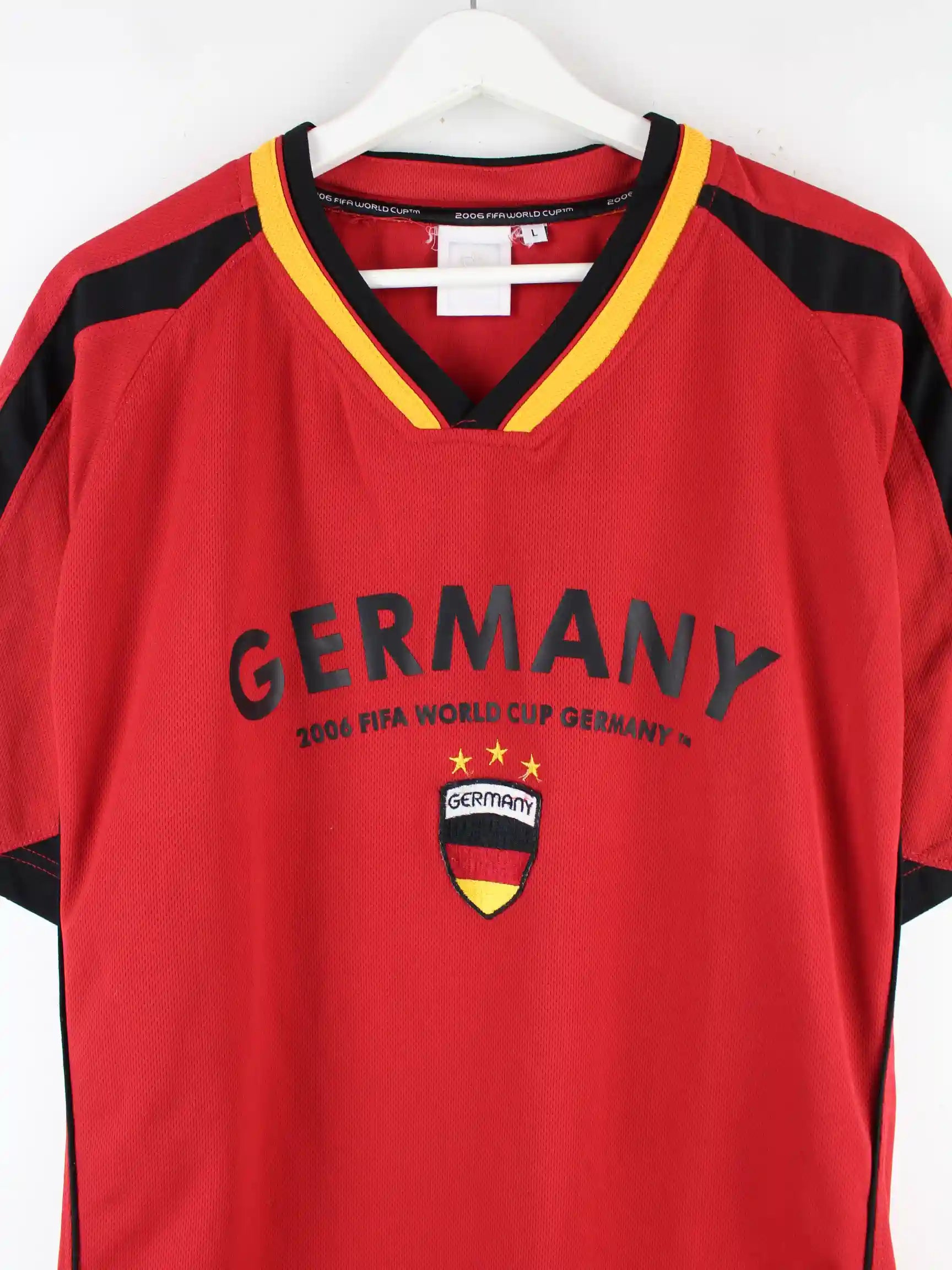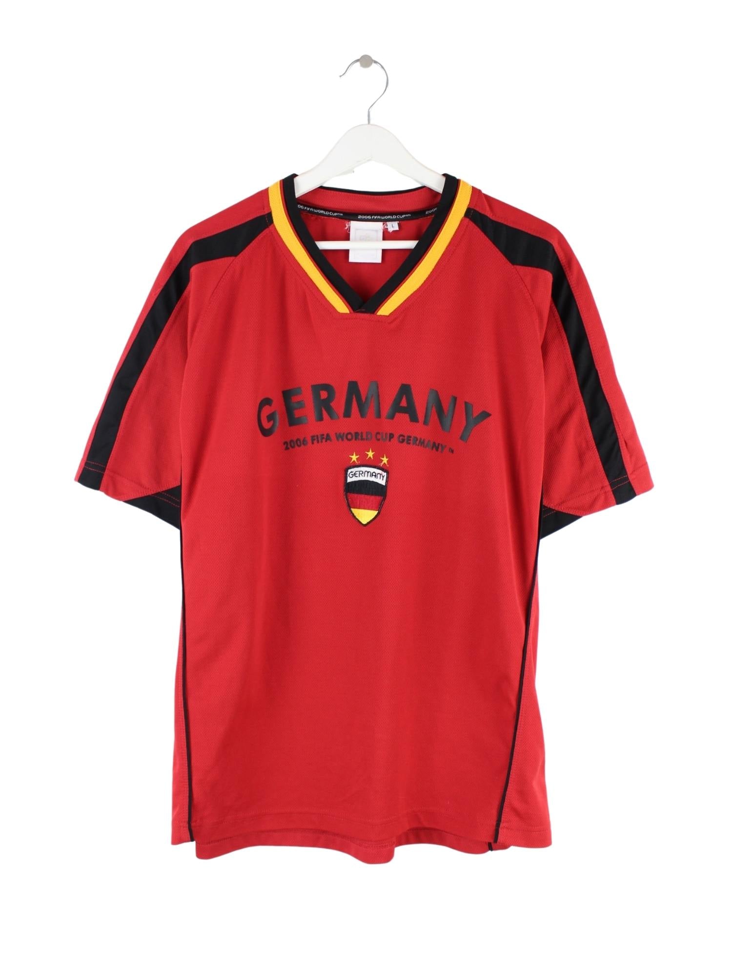 Rotes Trikot der Marke UEFA in Größe L. Es ist aus Synthetik produziert und in gutem Zustand in Stock.