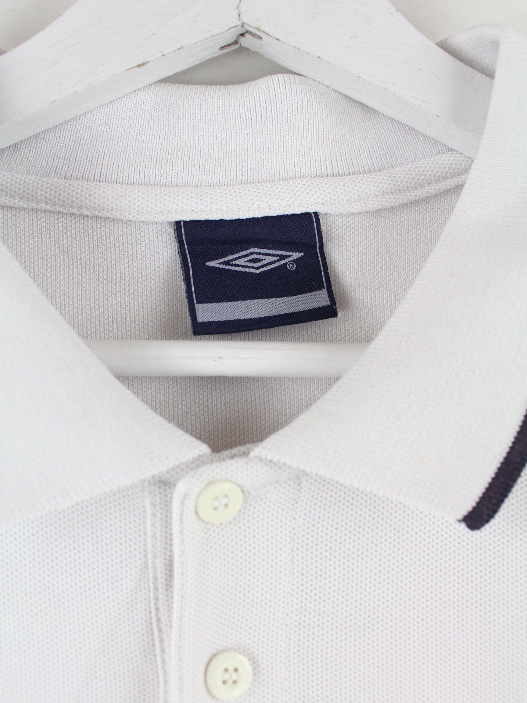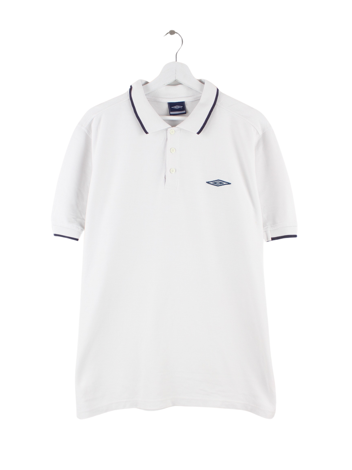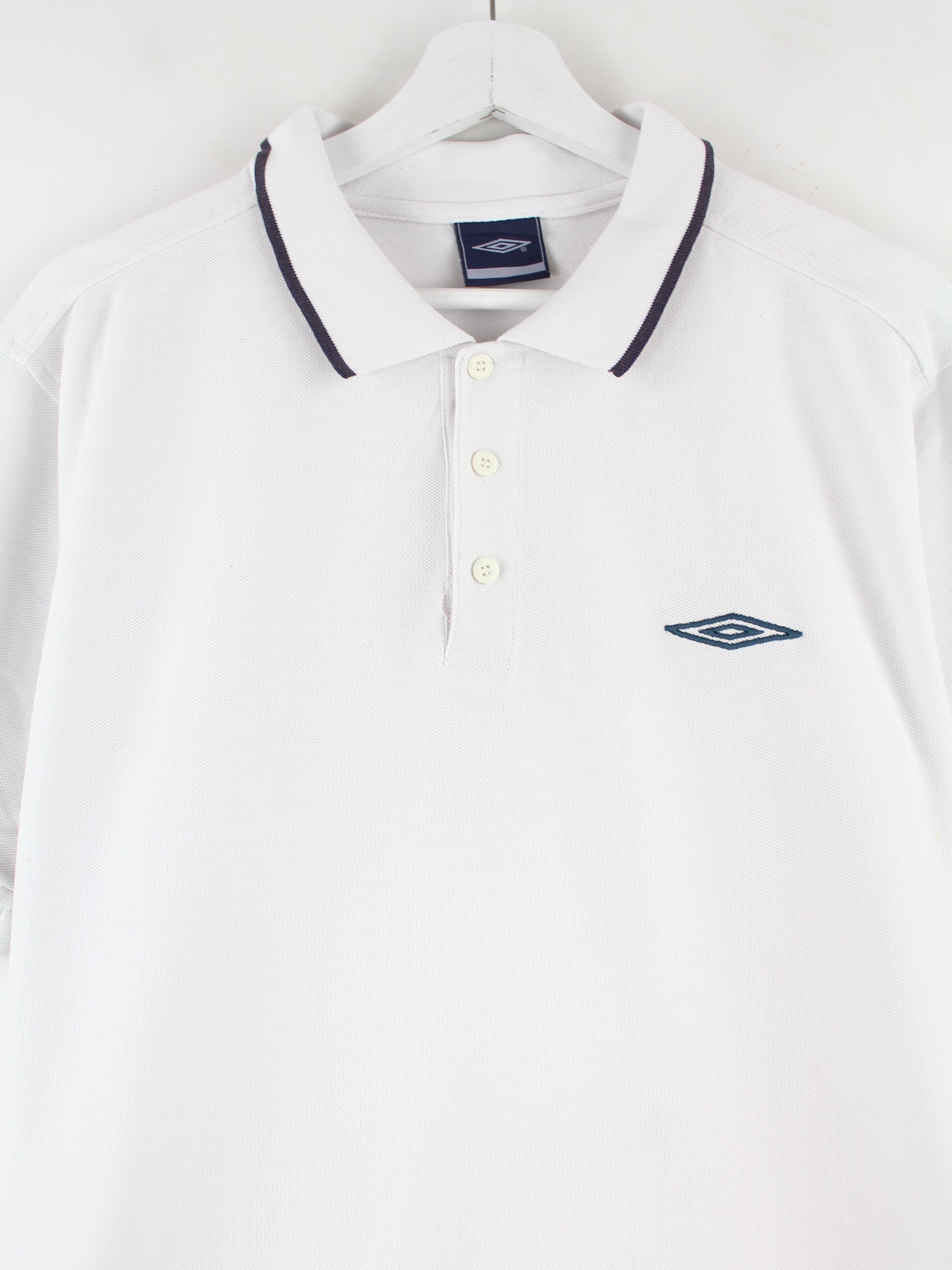 Poloshirt des Labels Umbro in Größe L. Es ist aus Baumwolle produziert und in Weiß lieferbar.
