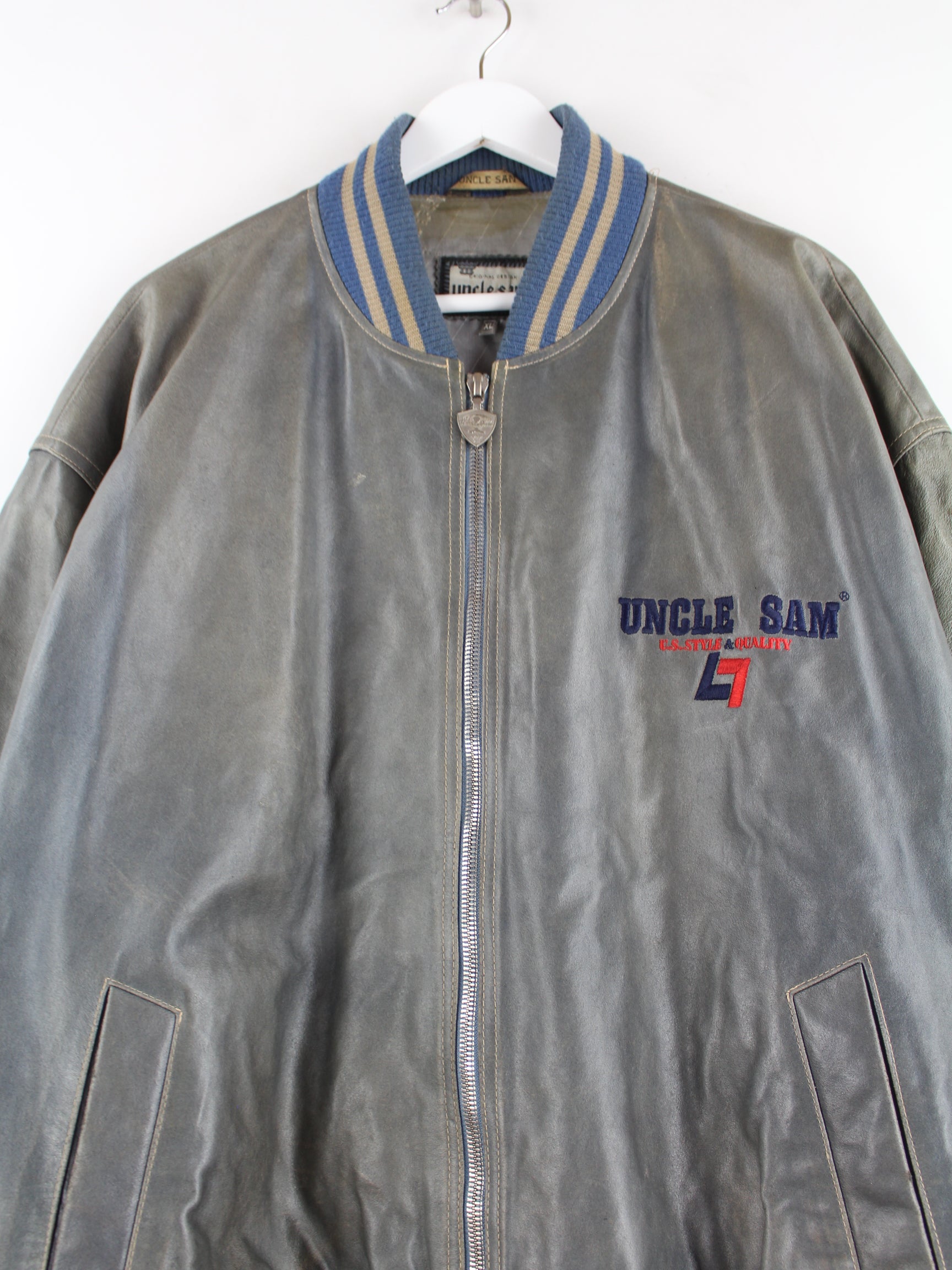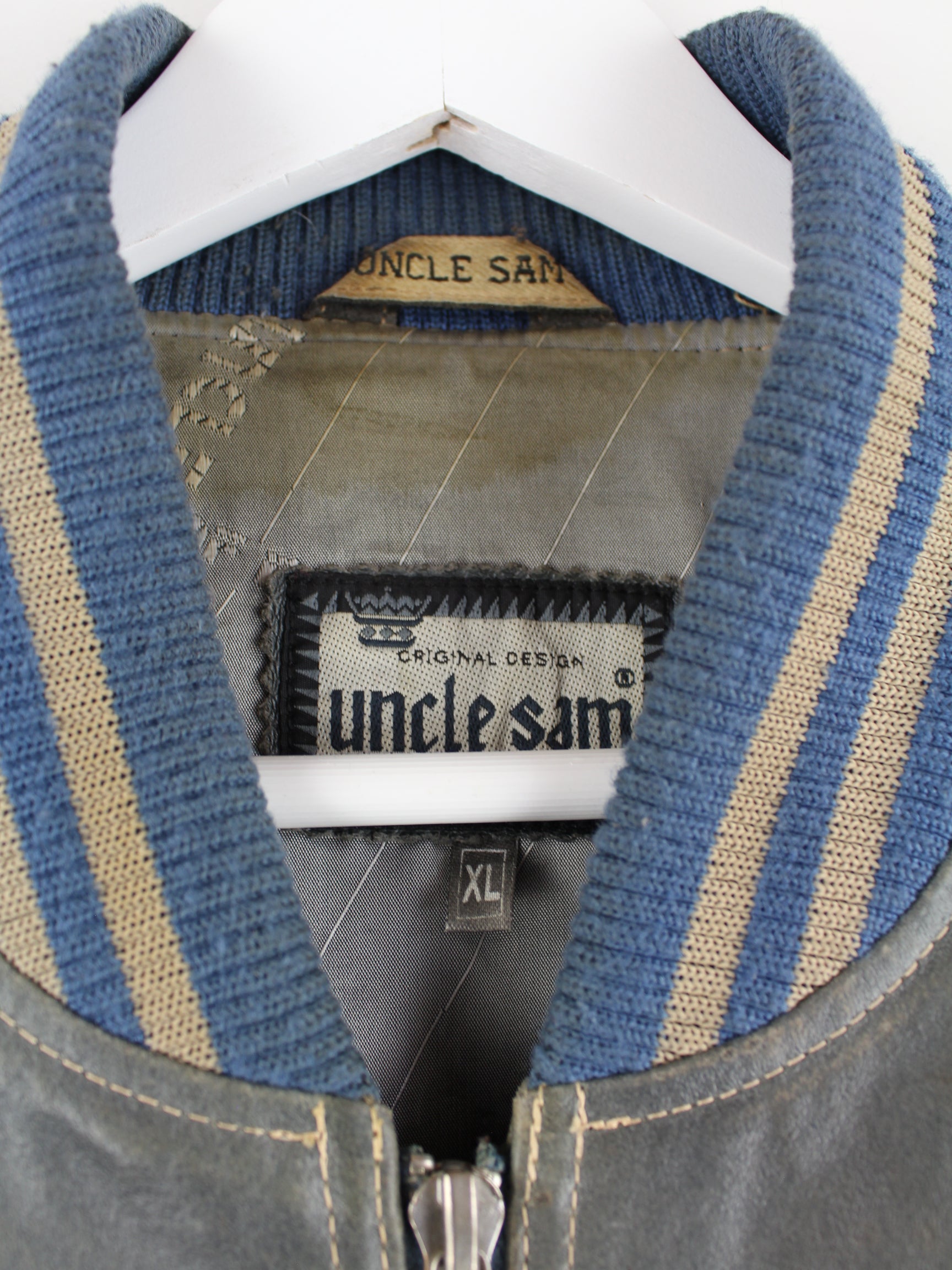 Uncle Sam 90s Vintage Leder College Jacke Grün XXL