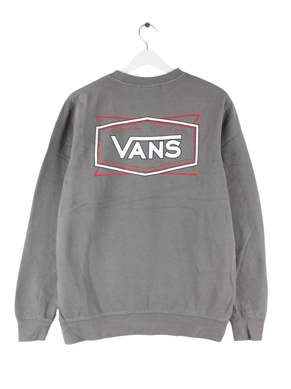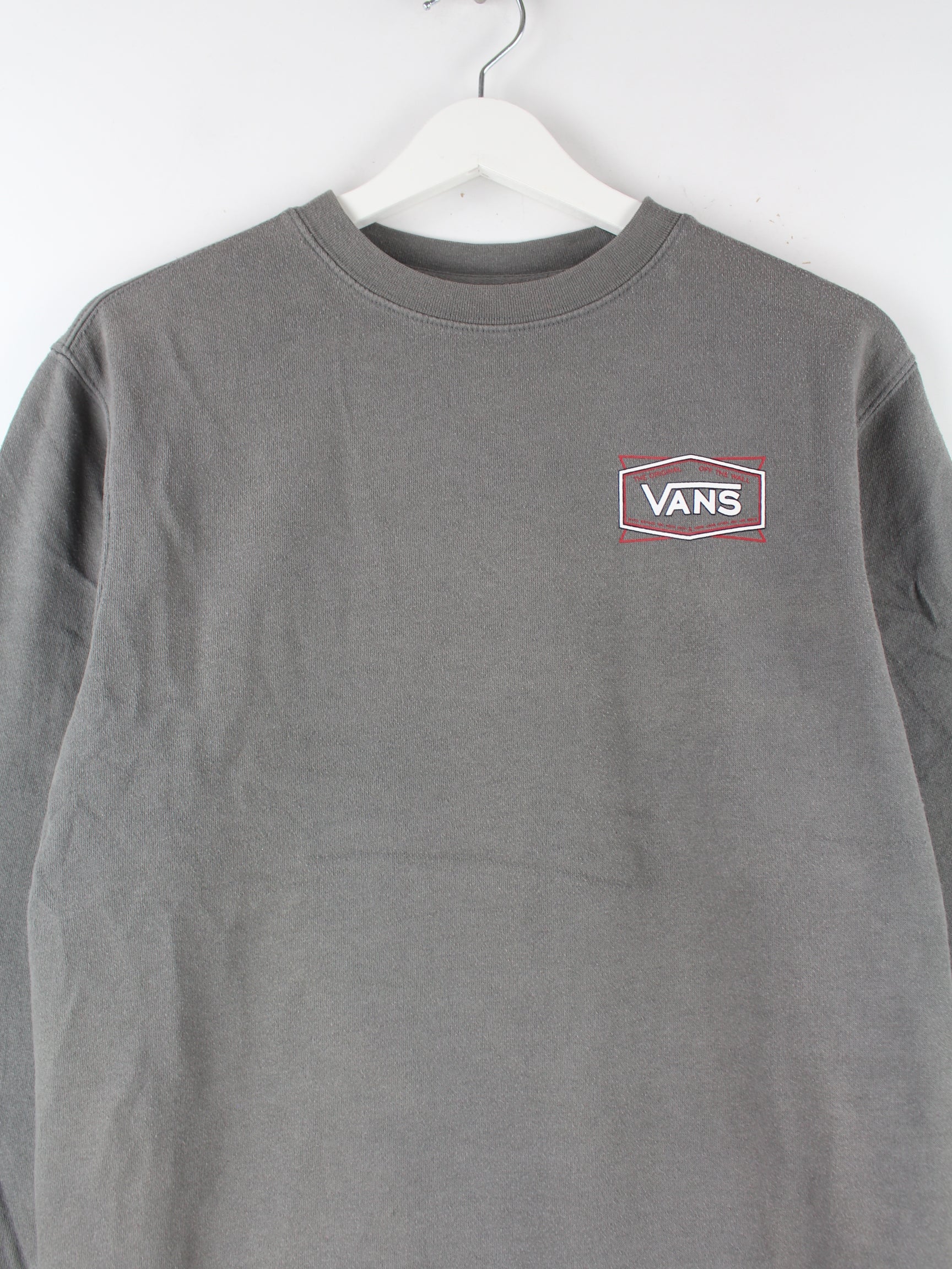 Grauer Sweater vom Brand Vans in Größe S. Er ist aus einer Baumwollmischung angefertigt und in sehr gutem Zustand im Angebot. Mit seltenem Print.