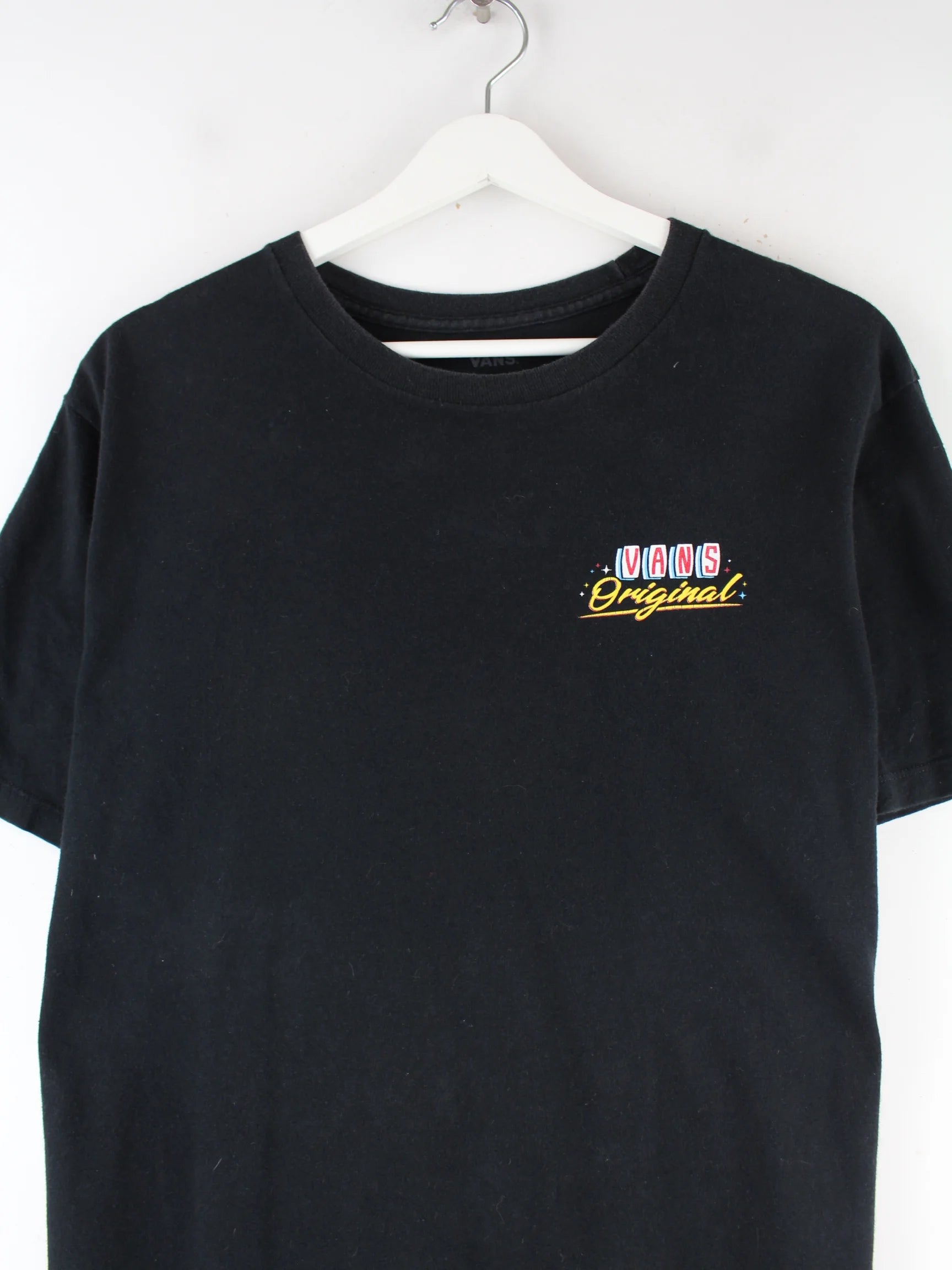 T-Shirt der Marke Vans in Größe M. Es ist aus Baumwolle hergestellt und in Schwarz im Angebot. Mit chiquem Print.