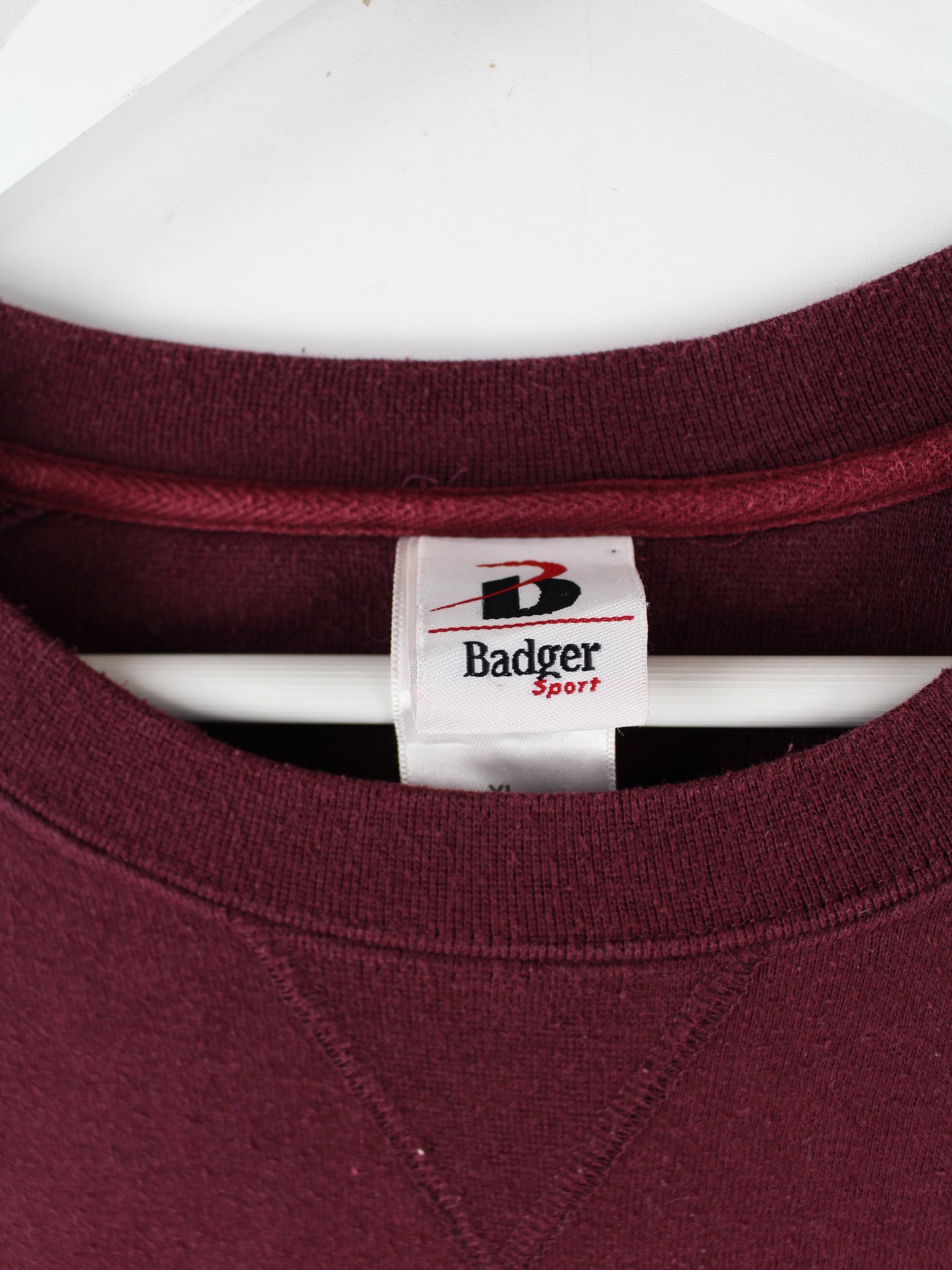 Vintage Sweater mit gestickten Motiven in Größe XL. Er ist aus einer Baumwollmischung und in Rot vorrätig.