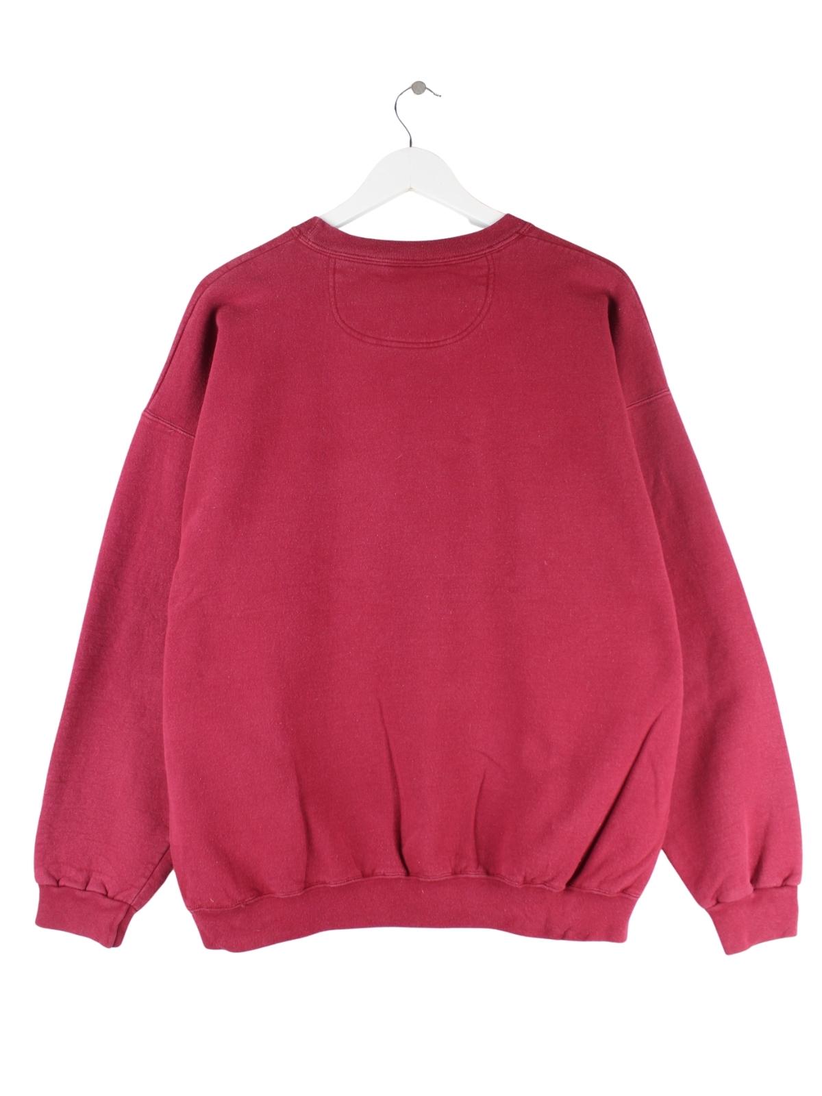 Vintage Sweater mit Stickereien in Größe L. Er ist aus einer Baumwollmischung gefertigt und in Rot in Stock.