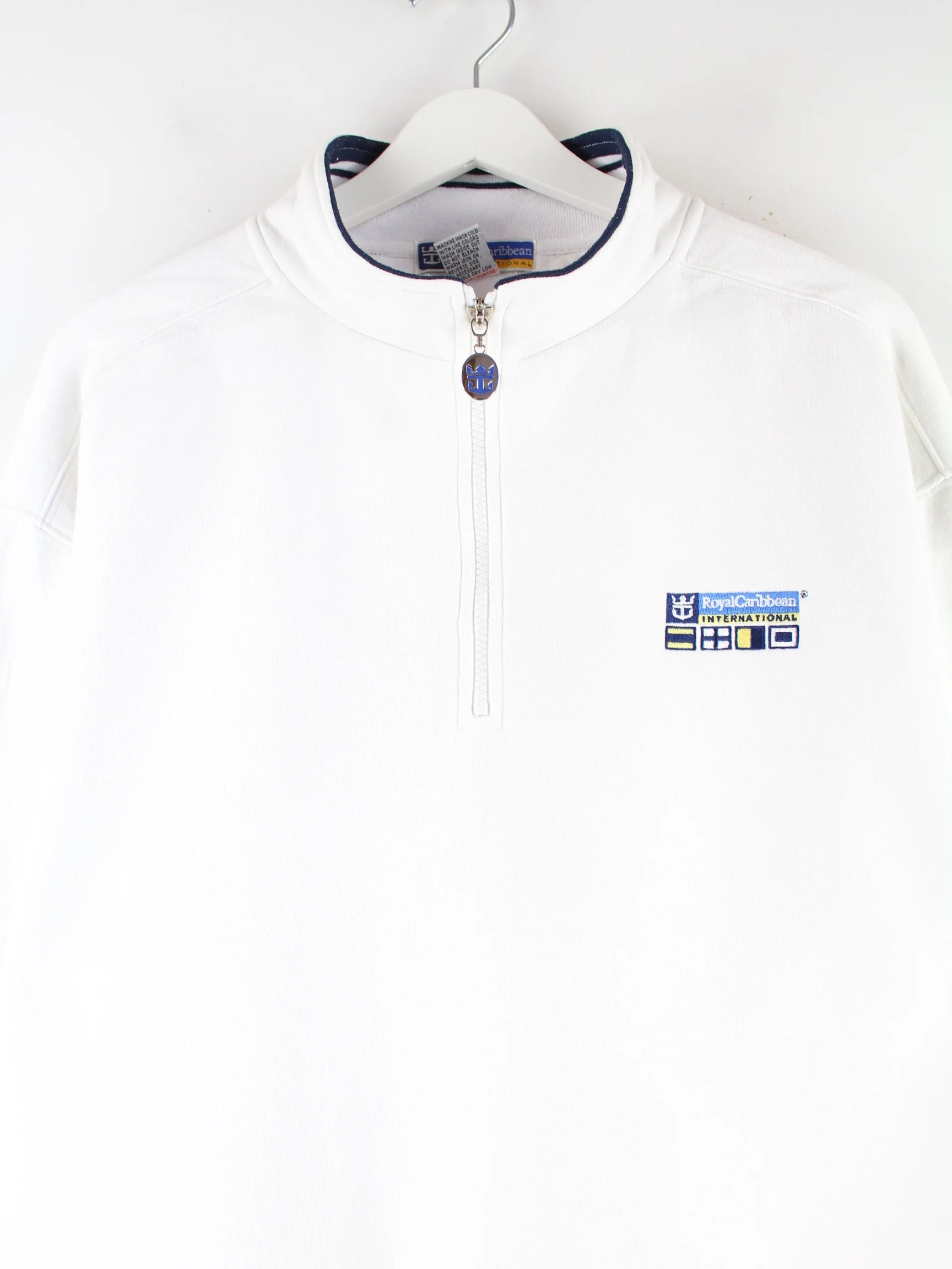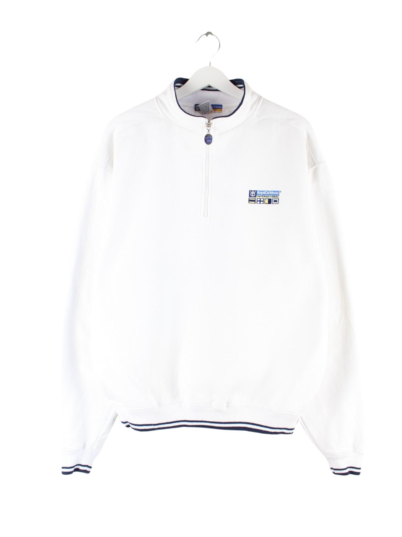 Vintage 00s Carribean Embroidered Half Zip Sweater Weiß M