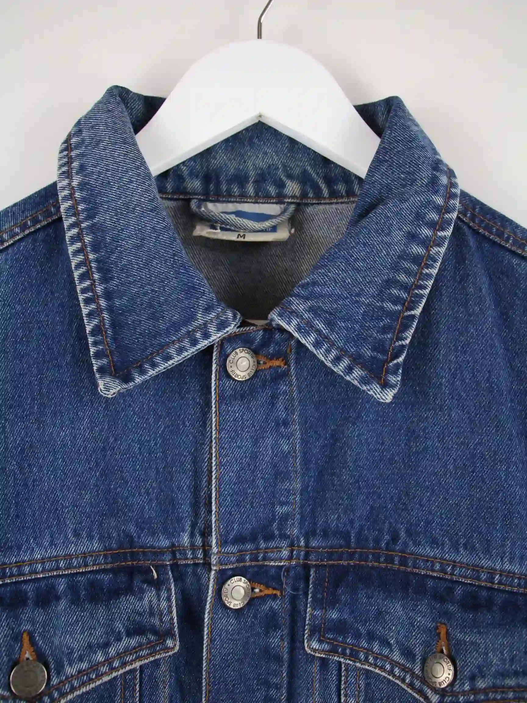 Blaue Vintage Jacke in Größe M. Sie ist aus Baumwolle und in gutem Zustand auf Lager.