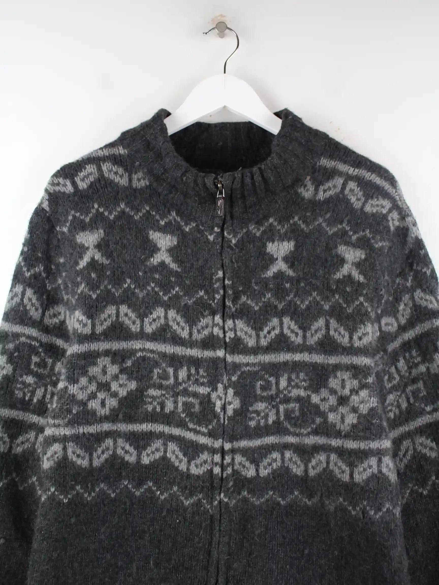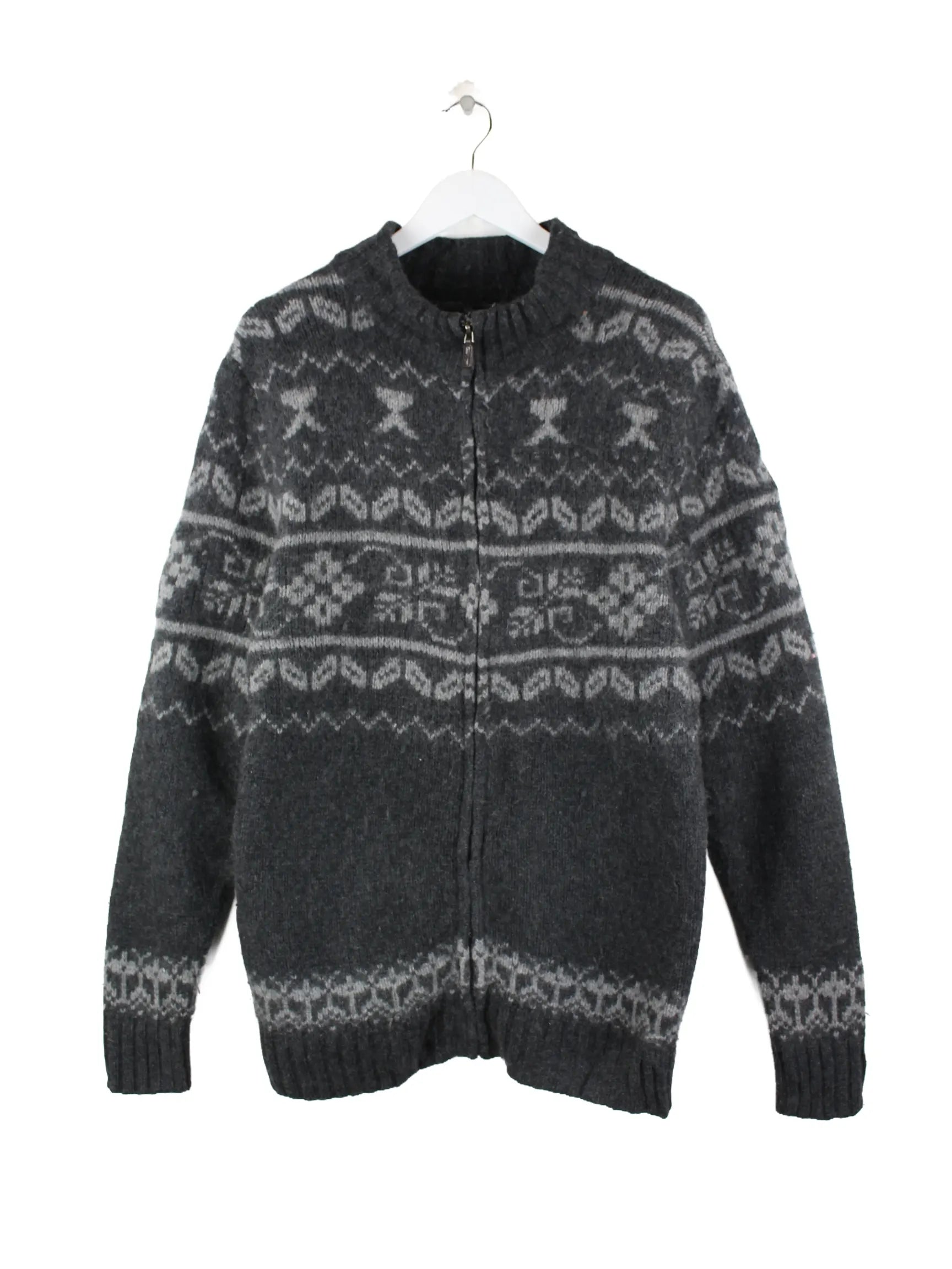 Graue Vintage Strickjacke in Größe XL. Sie ist aus einer Wollmischung produziert und in gutem Zustand bei uns vorrätig.