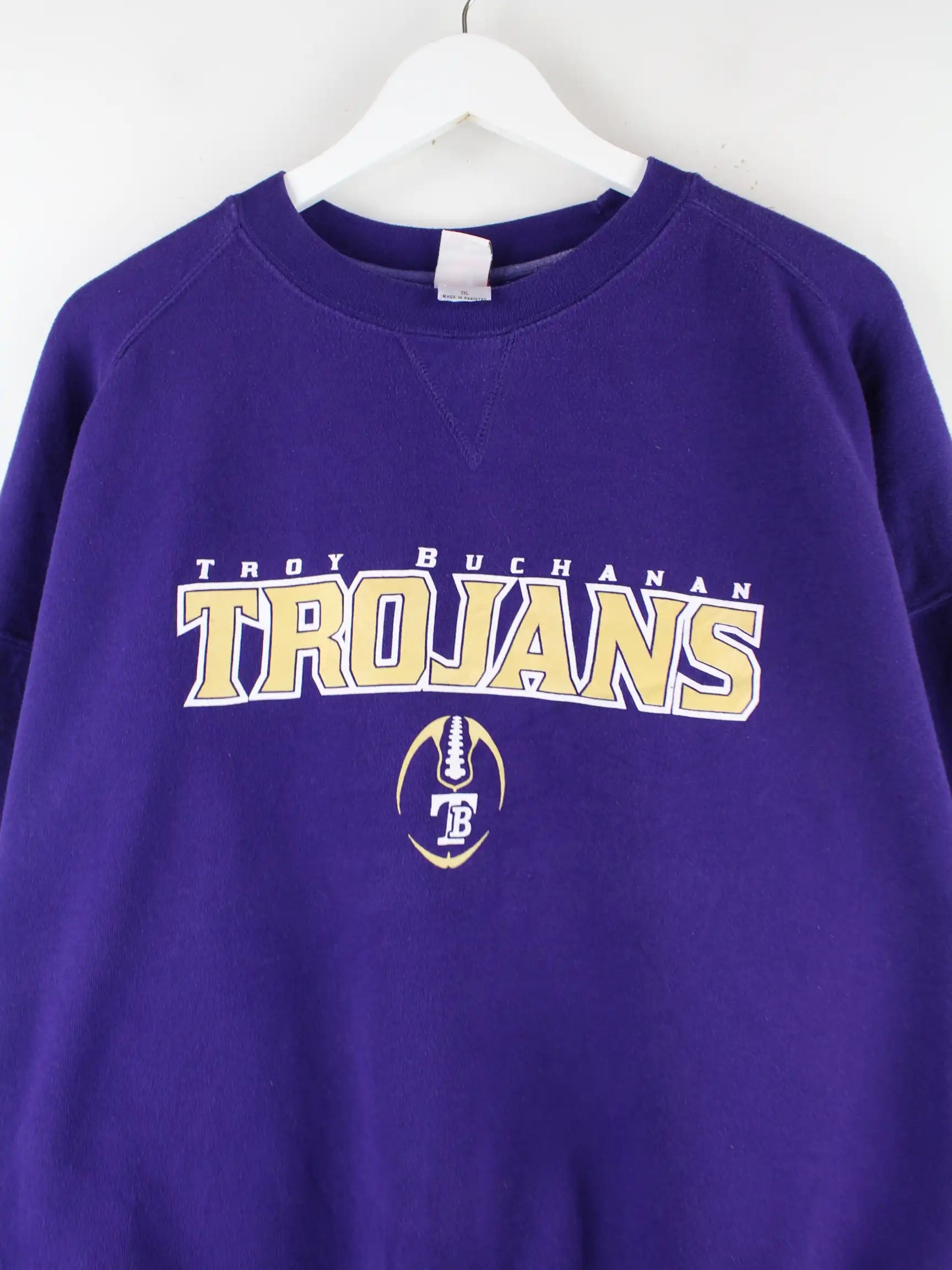 Vintage 00s Troy Buchanan Trojans Print Sweater Lila XXL