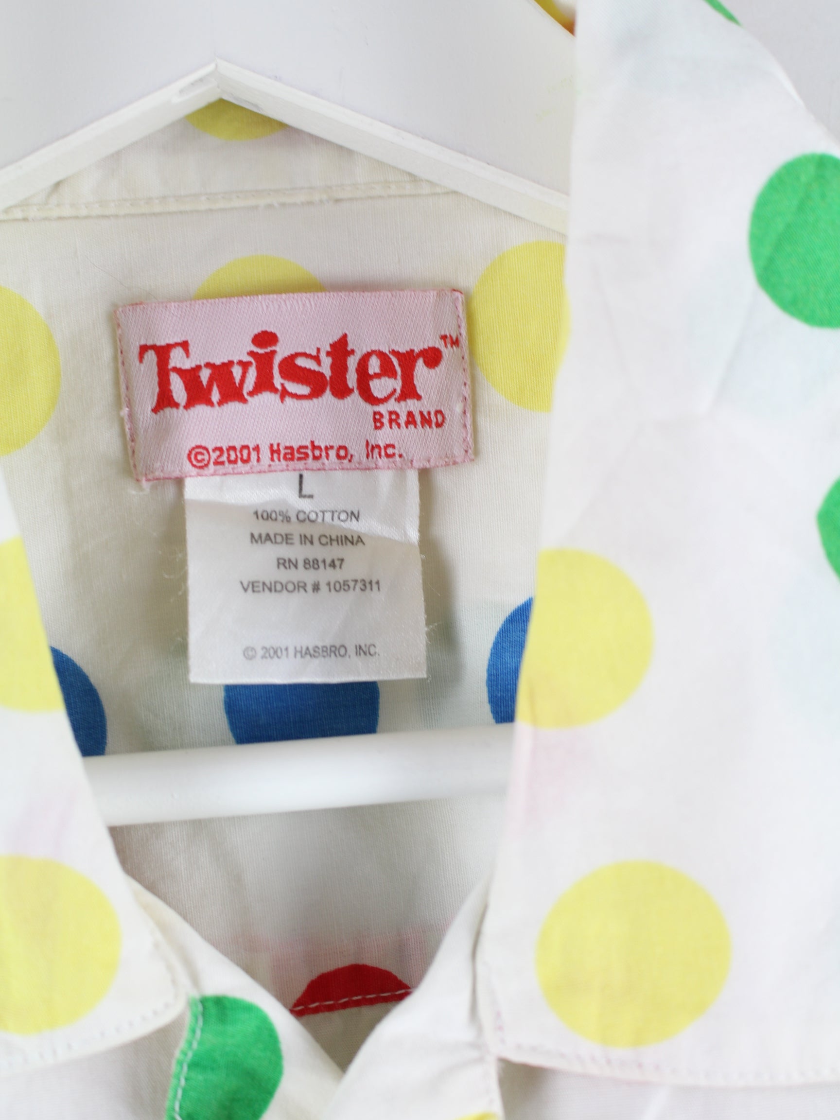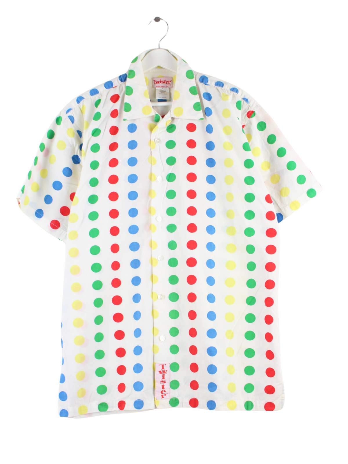 Vintage Twister Pattern Hawaii Hemd Weiß L